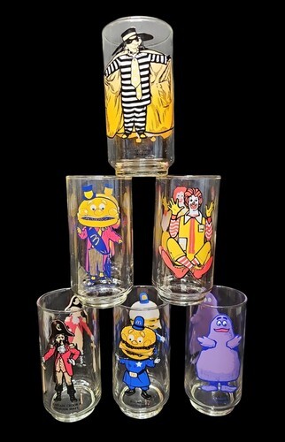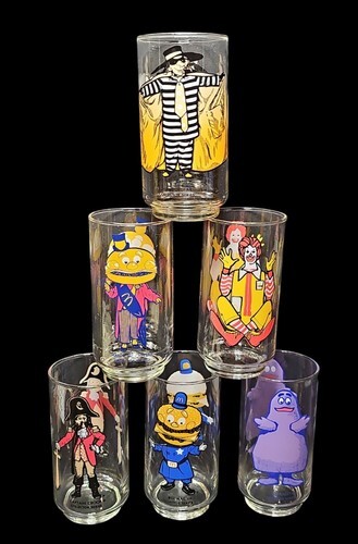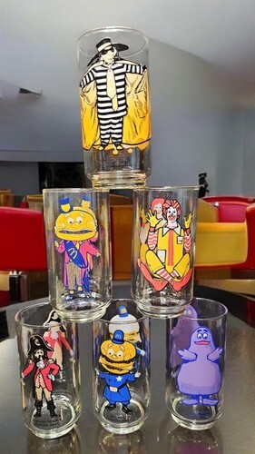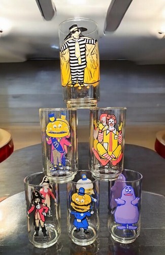 UP FOR SALE: Vintage 1977 McDonalds Collectors Action Series Glasses Complete Set of 6 MINT Ronald McDonald, Officer Big Mac, Mayor Mc Cheese, Grimace, the Hamburgler, and Captain Crook. These glasses were never used--they were wrapped and boxed. They have been gently hand washed and are ready to come be in your collection. AS IS AS SHOWN Please take a look at the pictures for the best description. A photo is as good as a thousand words and is the best description of cosmetic condition. Use your ZOOM TOOL to best see this item! Please look closely at all the photos for condition--Thank you *Vintage and secondhand items may have flaws. Please review item(s), description and picture(s). I do my best to research and describe the items accurately, but I am not an expert on all of the items I sell. Unless specified in the listing, all items are sold AS-IS AS-SEEN in photos* All of My Items Come from a Smoke Free Home and have been cleaned per's standards I do Ship everyday Monday - Friday I do my best to ensure that my photos are as true to color as possible. However, due to inconsistencies of various monitors, lighting sources, digital photography, product color may slightly vary Feel Free to Visit My Store and Browse Through My Other Listings as I am happy to combine shipping for you. Please contact me with any issues prior to leaving negative/neutral feedback or low detail ratings, as I will always do my best to solve any problems that may come up! If you have any further questions, please feel free to message me Any props that are used in the taking of the photos are not included. Only the item/items in the title of the listings are being sold