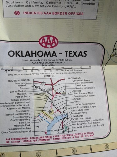 Vintage 1979 AAA Oklahoma Texas Travel Map