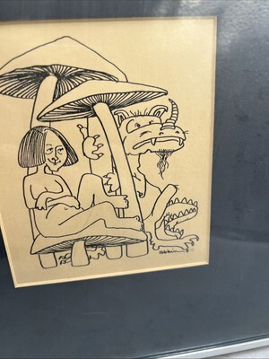 - Vintage 1979 Framed Art Matted Group Of Women And Animal Signed Rare