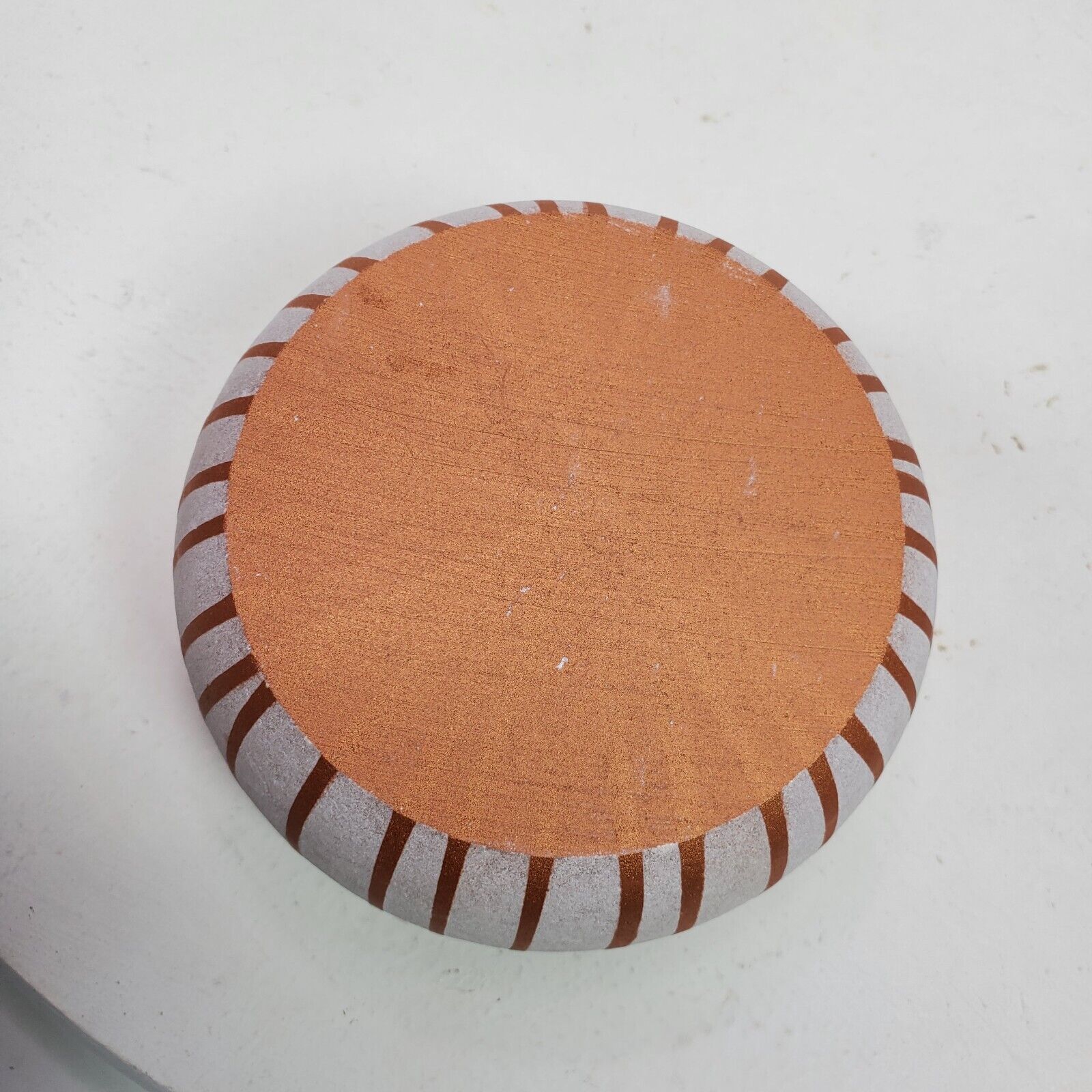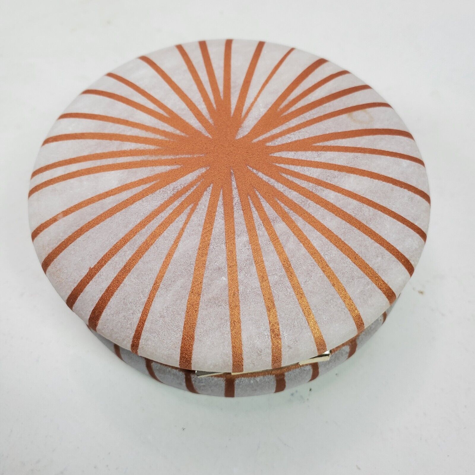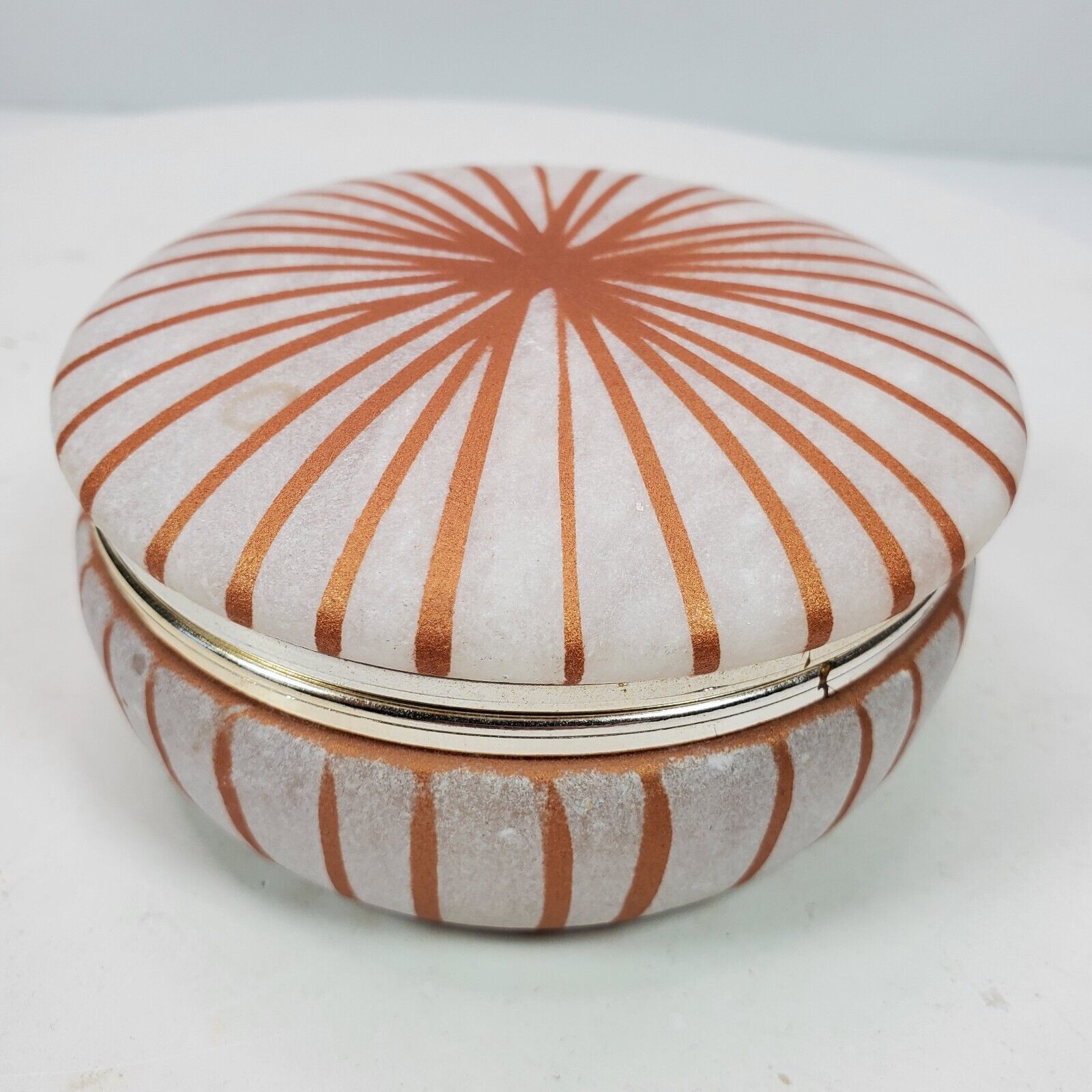 - Vintage 1980s Trinket Box w/ Lid 4x2 Inch Gold White Stripes Resin