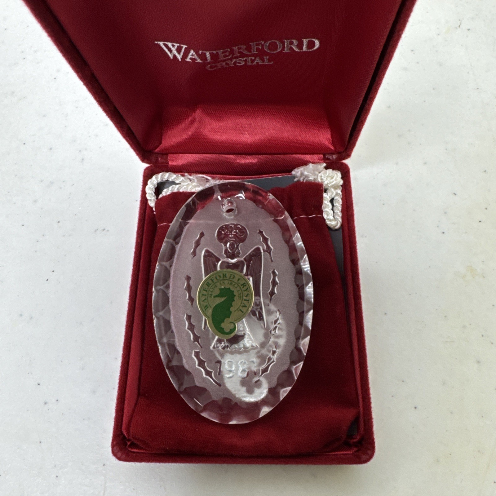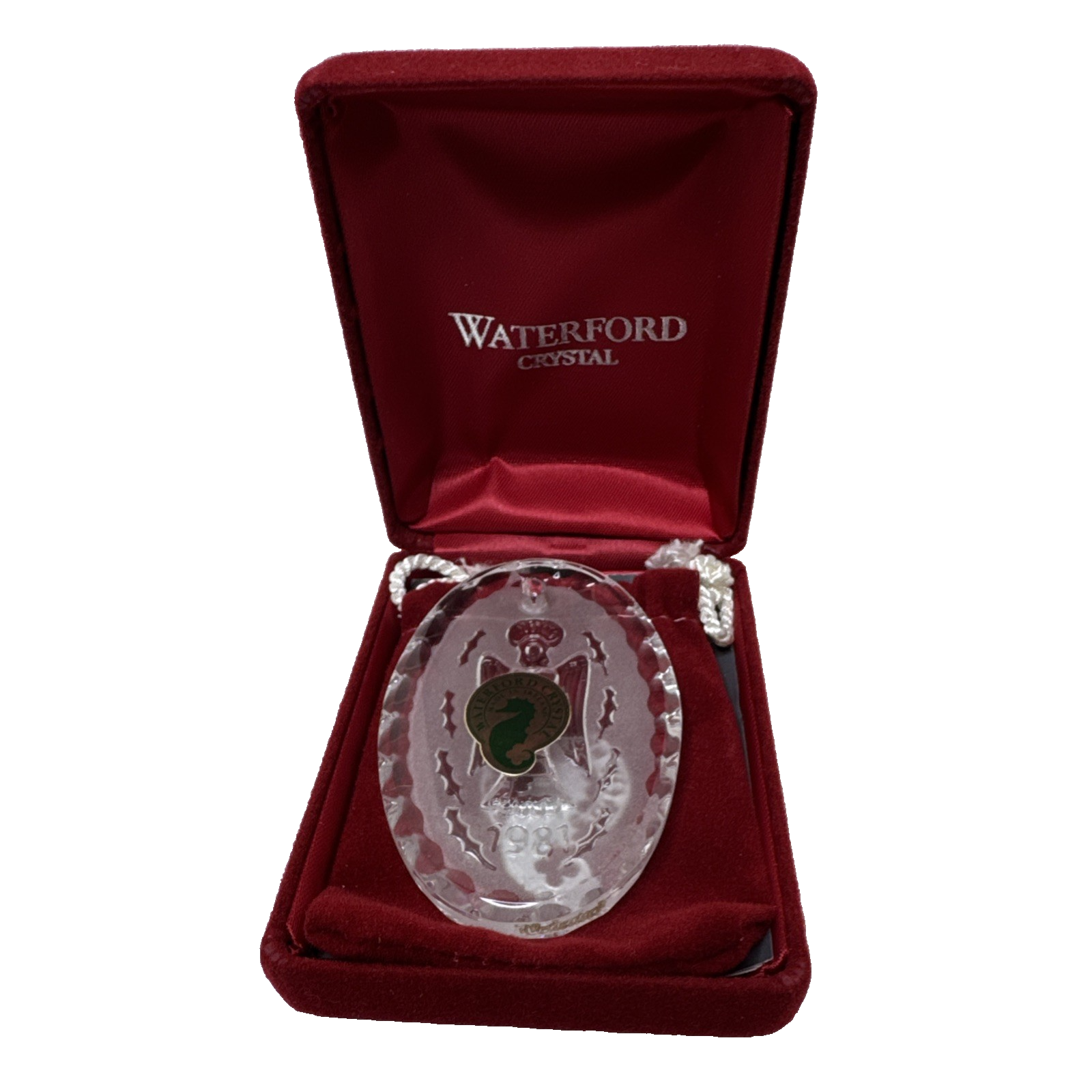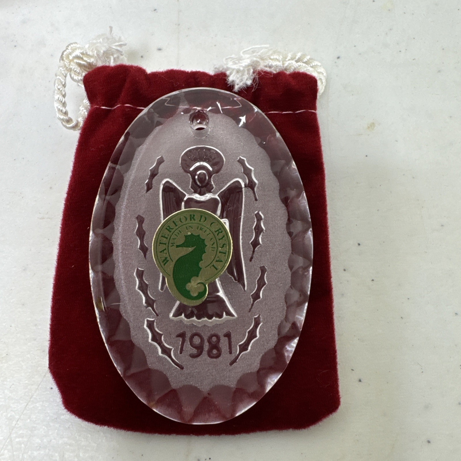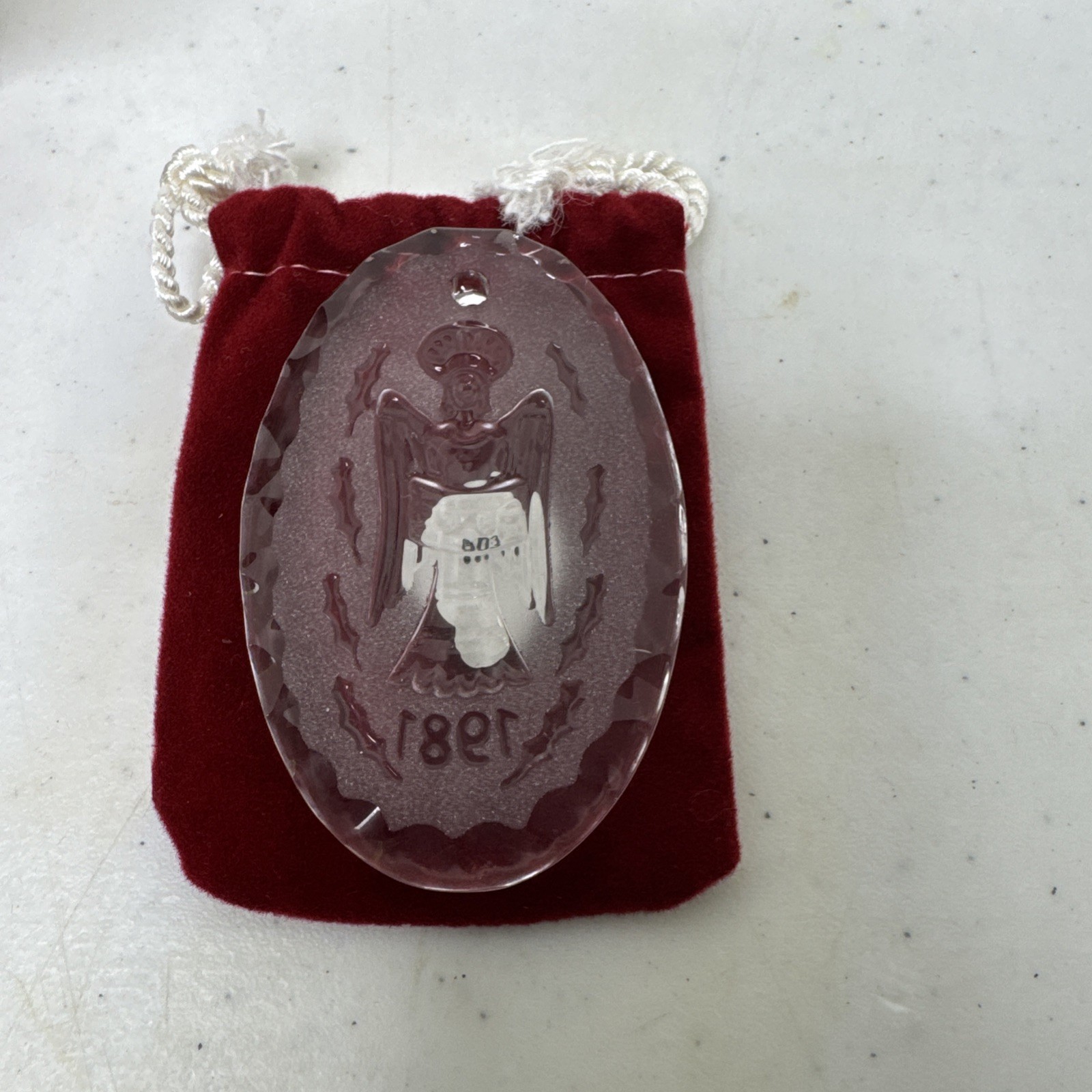 Vintage 1981 Waterford Crystal Ornament W/Box & Pouch Christmas Tree Angel Halo