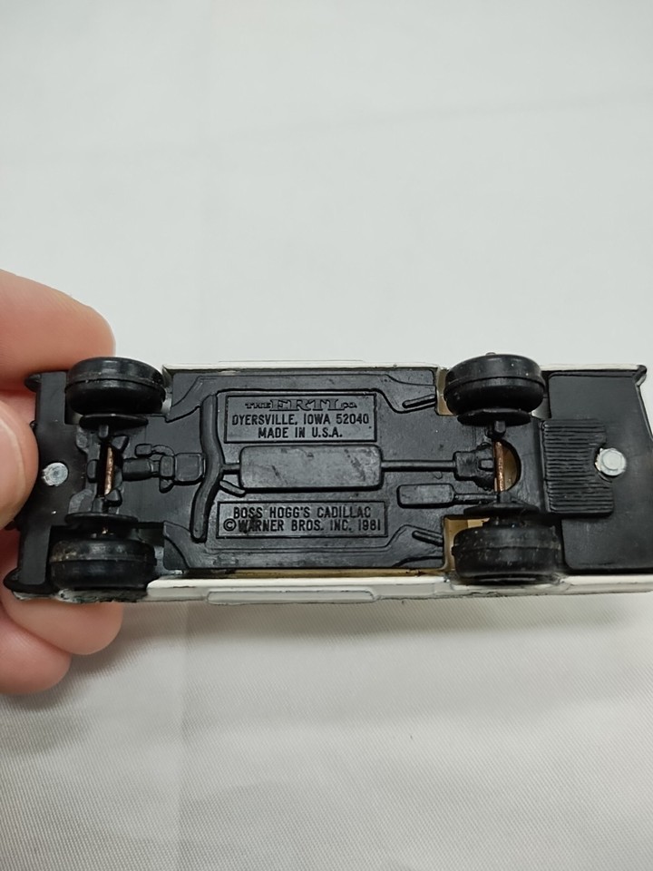 - Vintage 1981 White ERTL Boss Hogg's Cadillac Toy Car