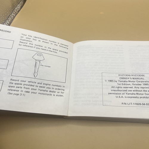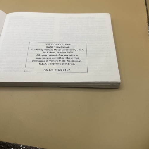 - Vintage 1985 Yamaha XVZ13DS/XVZ13DSC Owner’s Manual