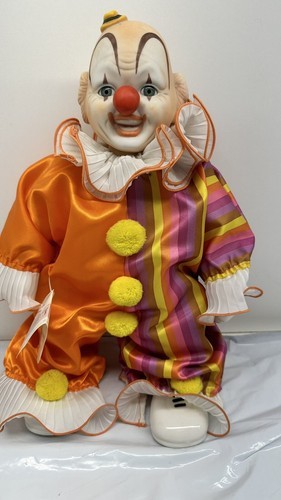 New with tags. On been on display since 1989 This vintage porcelain clown doll, measuring 15 inches, is a limited edition original by Victoria Ashlea from the year 1989. The doll is in excellent working condition and comes complete with the doll itself. The doll features a beautiful design and is perfect for collectors of vintage dolls and clown memorabilia. This doll is sure to be a great addition to any collection and is perfect for display purposes.plays you are my sunshine