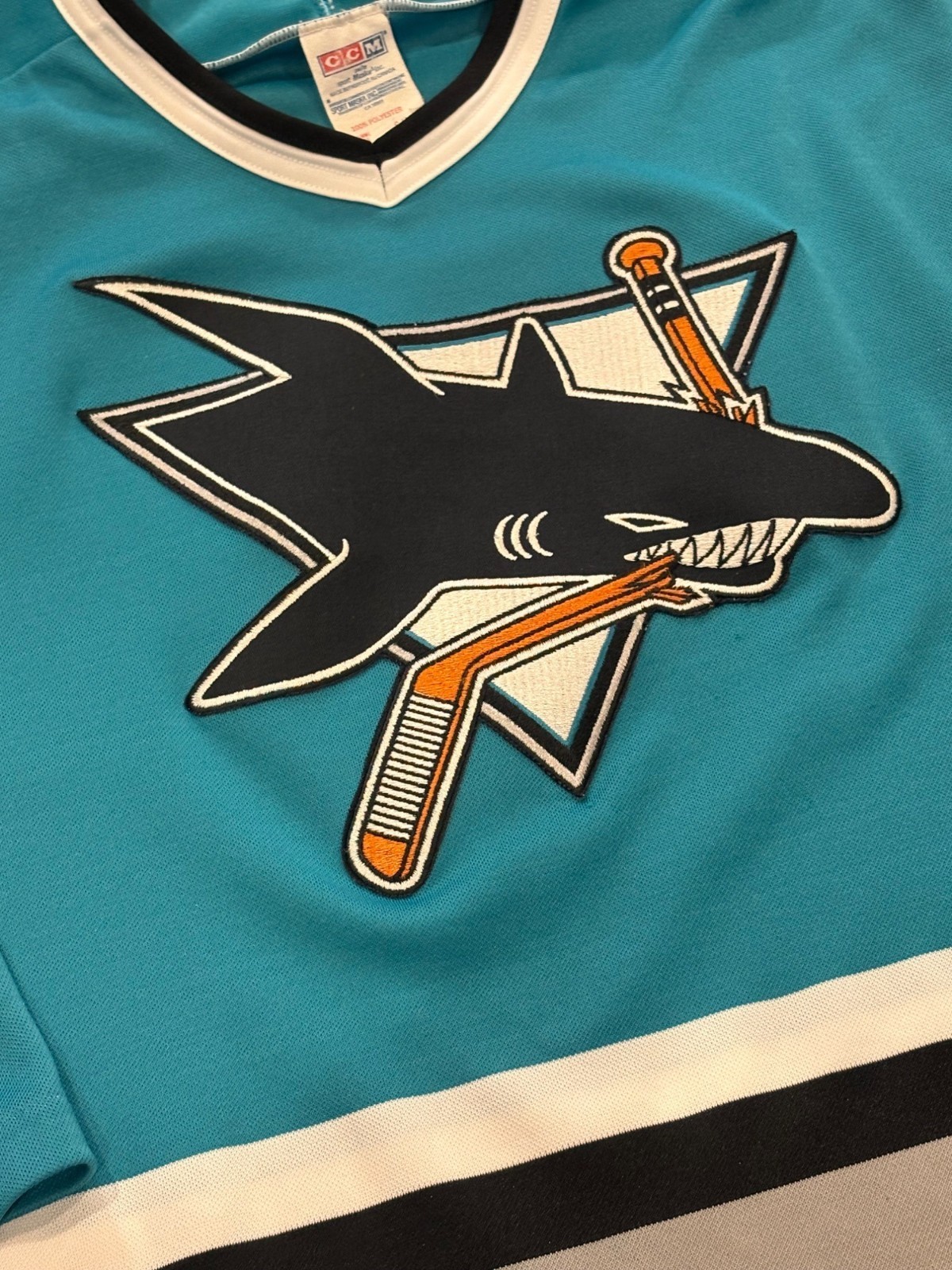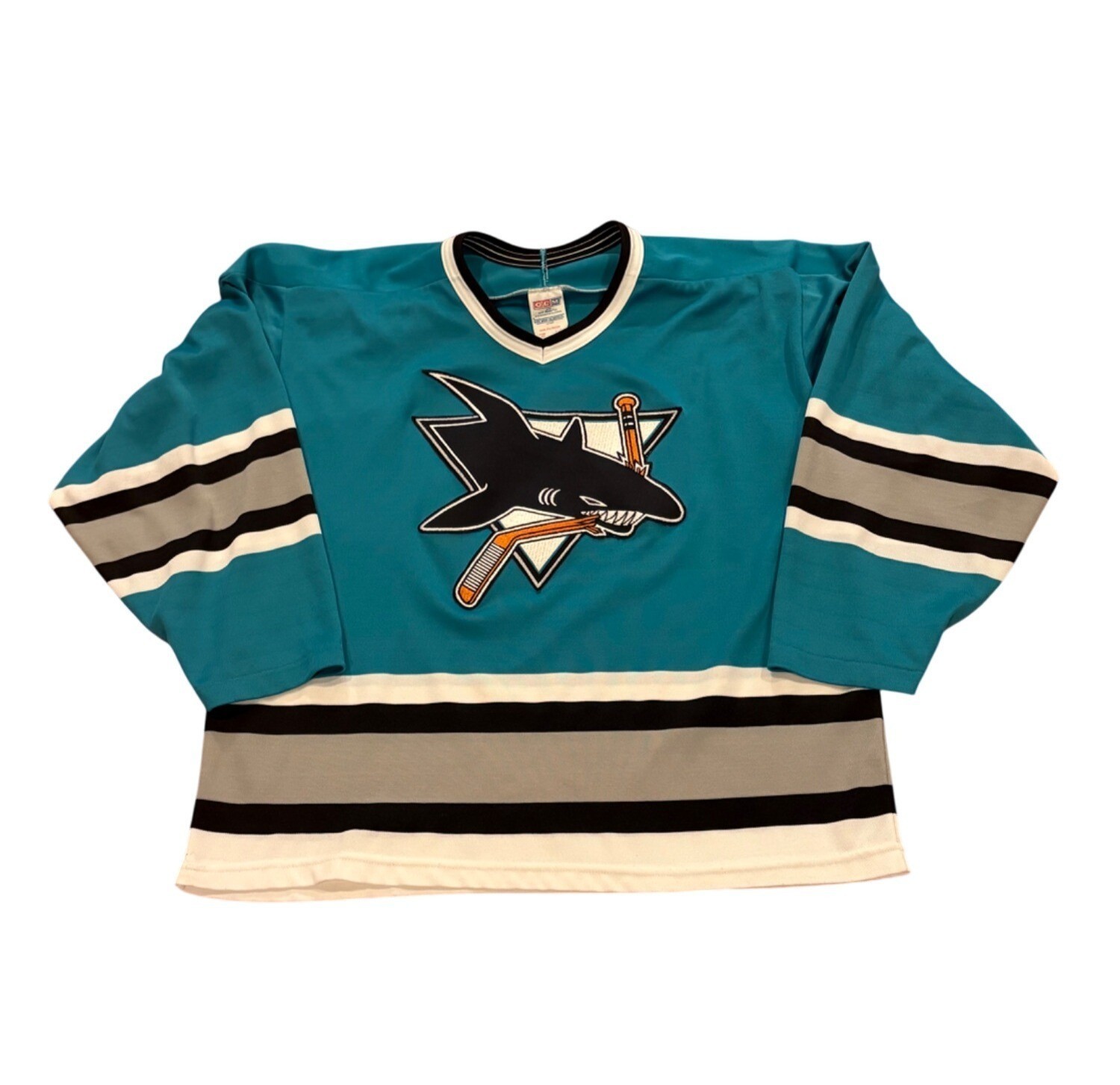 Up for sale is a Vintage 1990's CCM Maska San Jose Sharks Stitched NHL Jersey Men's Large. Fully stitched jersey. Excellent pre-owned condition. You get exactly what you see in the pictures. Inventory number C1984. Measurements Pit to Pit - 23 inches Top to Bottom - 27 inches Item will ship within one business day, so you get your item fast. Shipping will be Monday-Friday with the exception of the holiday season when shipping will take place on Saturday's and some Sunday's. Please check out my other listings and thanks for looking.