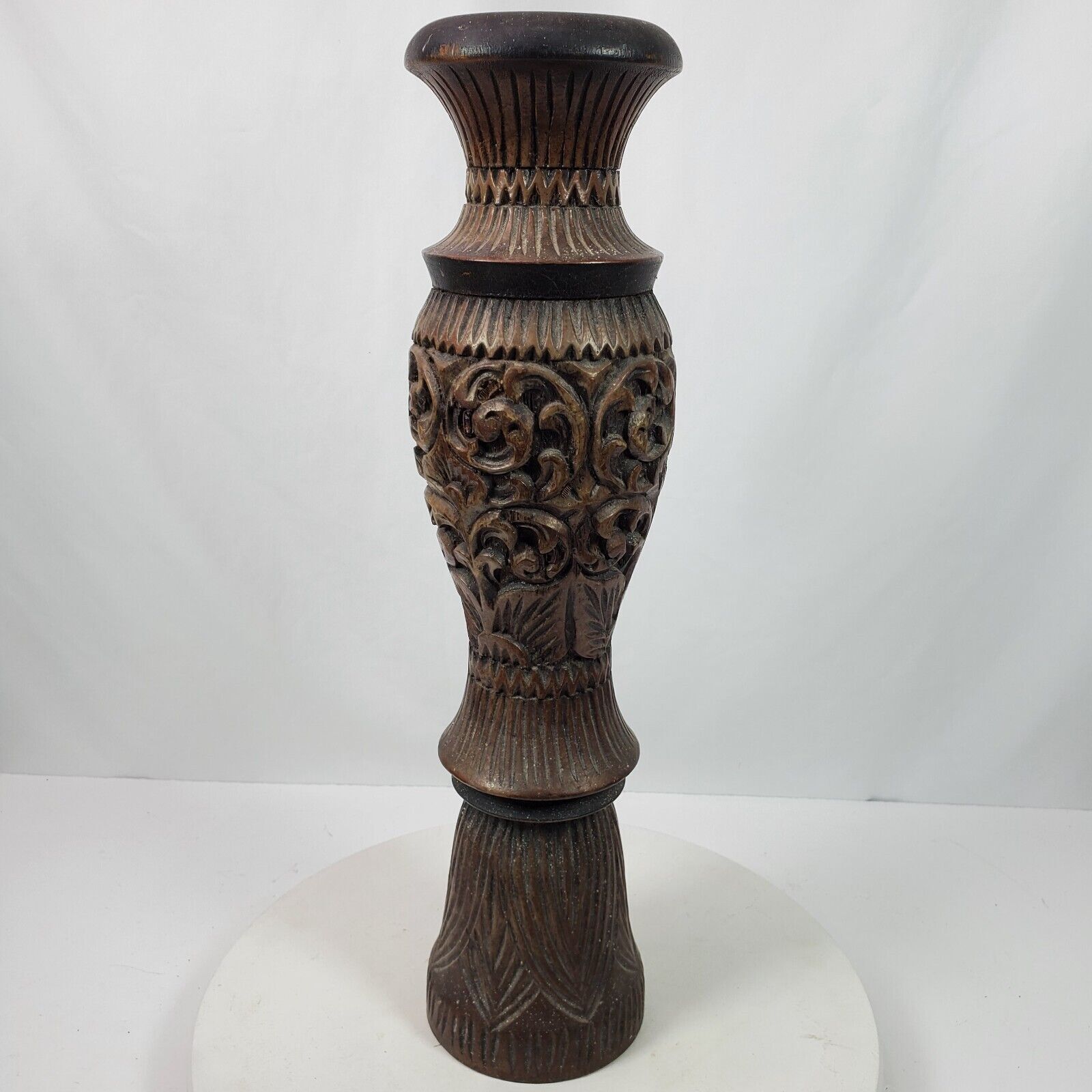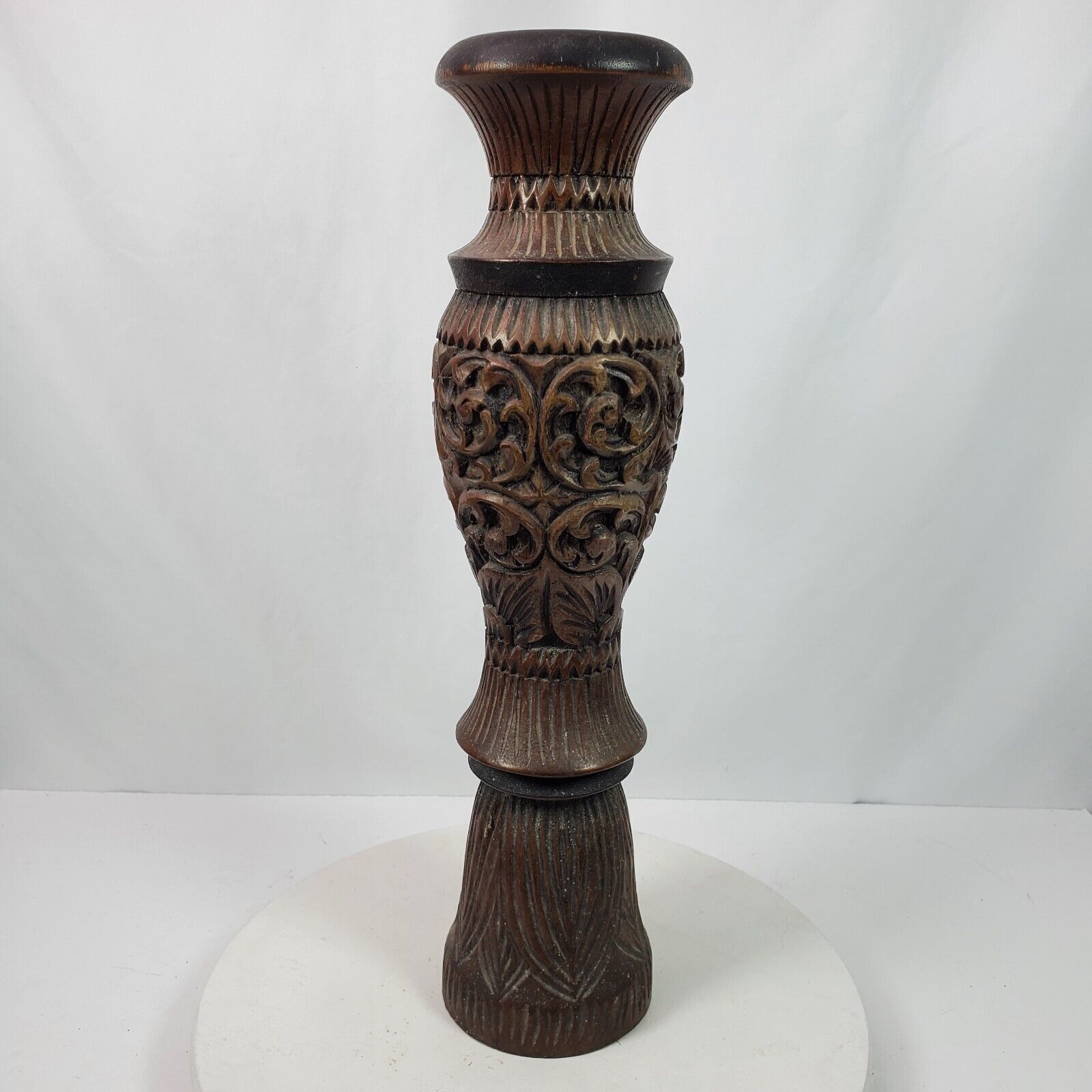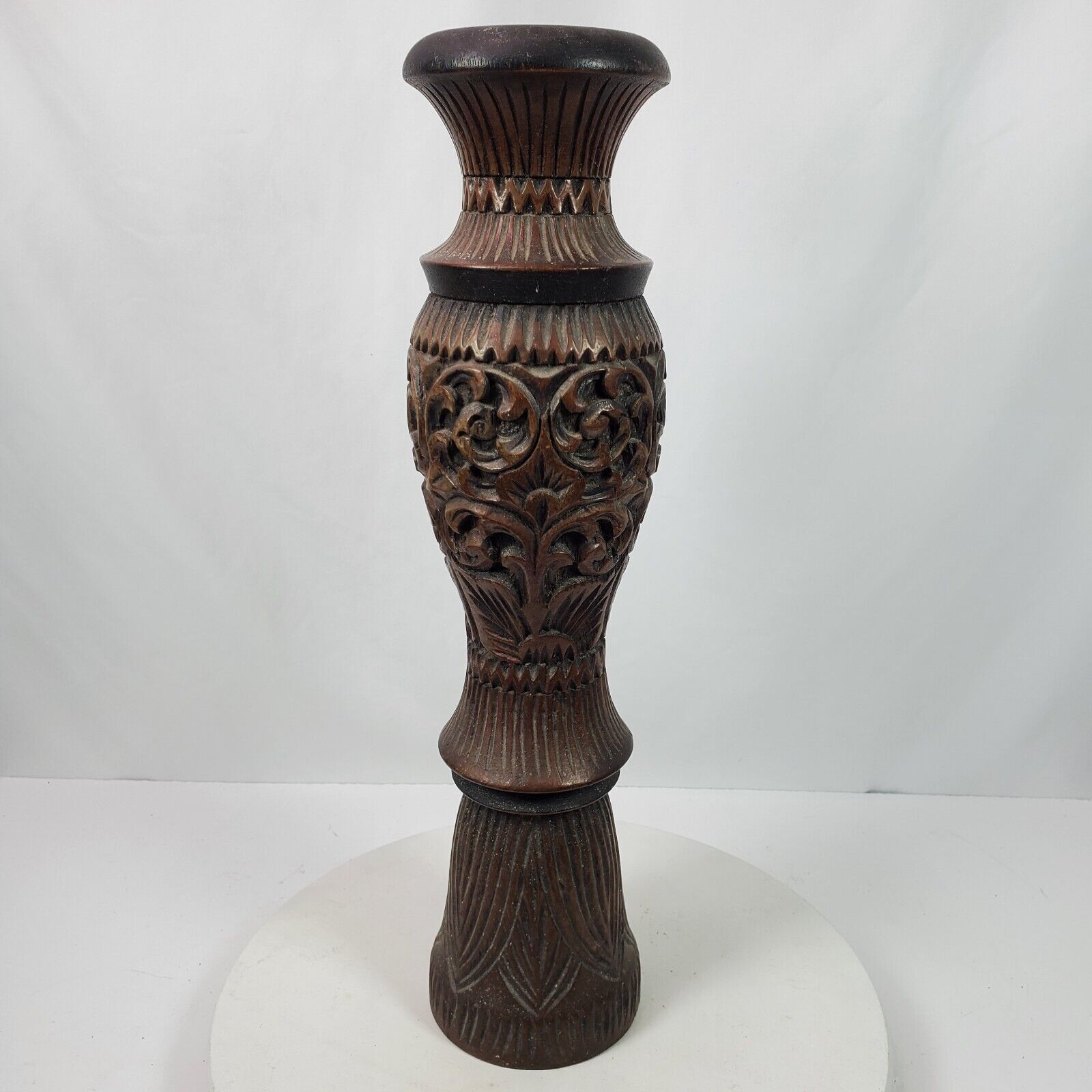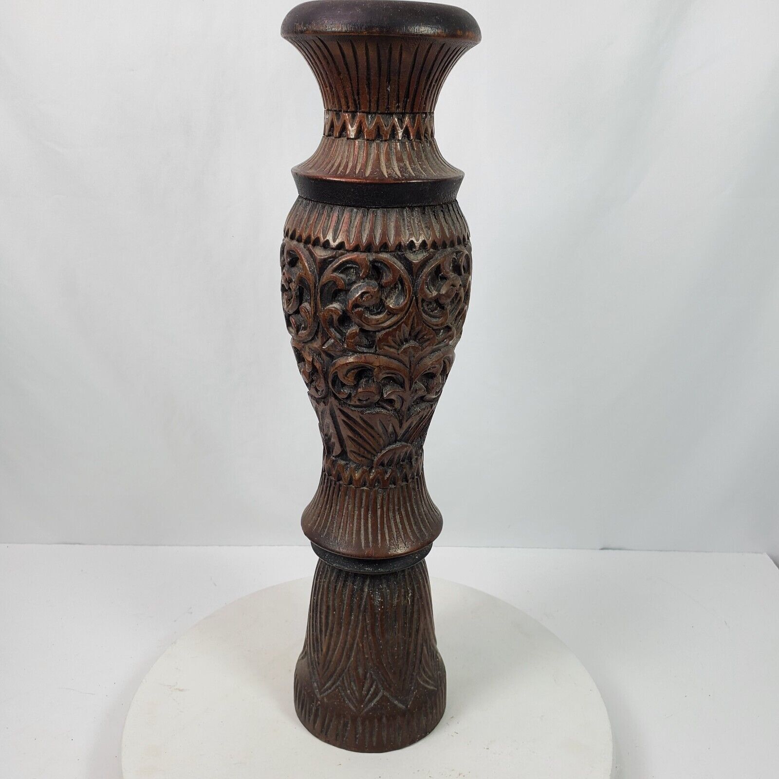 - Vintage 1996 Hand Carved BIG Candle Stick Holder From Malaysia 20 Inch Tall