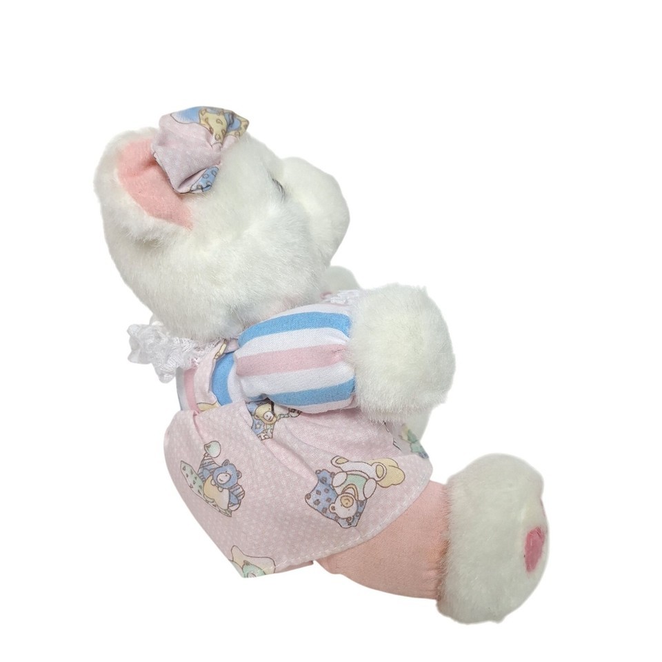 Vintage 1998 Play By Play Bear Plush Pink Dress Lace Bow Stuffed Animal 7.5"
