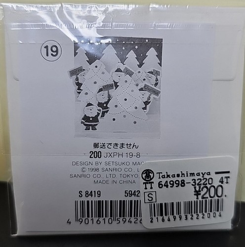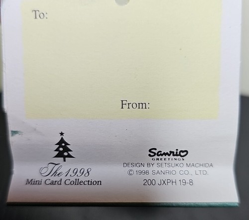 Vintage Rare 1998 Sanrio Pop Up 3D Mini Christmas Card Package Tag Set - As Seen in the above photos! Vintage 1998 Sanrio Mini Christmas Pop Up Mini Message Card White Christmas Tree Designed by SETSUKO MACHIDA c 1997,01998 Sanrio has been producing greeting cards in Japan as early as 1969, years before their most famous character, Hello Kitty, came to life. Since then, they?ve released hundreds of variations of greeting cards each year. At one point in the early 2000's they actually had a website for their cards--but it is no longer around. Ead one of these cards has the name of the designer on the paper tag inside of the cellophane envelope--of which I will include in the photos above The design you see in the photos is the design you will receive This vintage Sanrio Pop Up 3D Mini Christmas Card Package Tag Set is a must-have for any fan of the beloved Brand/Company. The set features some form of a christmas holiday theme / scene and is made from high-quality paper. It was manufactured in 1997 and released in 1998, and is a rare find for collectors of Sanrio. The set includes 2 greeting cards / package tags, perfect for adding a special touch to your holiday gifts. The cards are 2" to 4" in length and width, making them the perfect size for any Christmas present. This item is a great addition to any collection of animation merchandise and collectibles. Get your hands on this rare find today! PLEASE REFER TO ALL PHOTOS FOR A BETTER VISUAL DESCRIPTION OF THE ITEM *Vintage and secondhand items may have flaws. Please review item(s), description and picture(s). I do my best to research and describe the items accurately, but I am not an expert on all of the items I sell. Unless specified in the listing, all items are sold AS-IS AS-SEEN in photos* All of My Items Come from a Smoke Free Home and have been cleaned per's standards I do Ship everyday Monday - Saturday Feel Free to Visit My Store and Browse Through My Other Listings as I am happy to combine shipping for you. Please contact me with any issues prior to leaving negative/neutral feedback or low detail ratings, as I will always do my best to solve any problems that may come up! If you have any further questions, please feel free to message me Any props that are used in the taking of the photos are not included. Only the item/items in the title of the listings are being sold