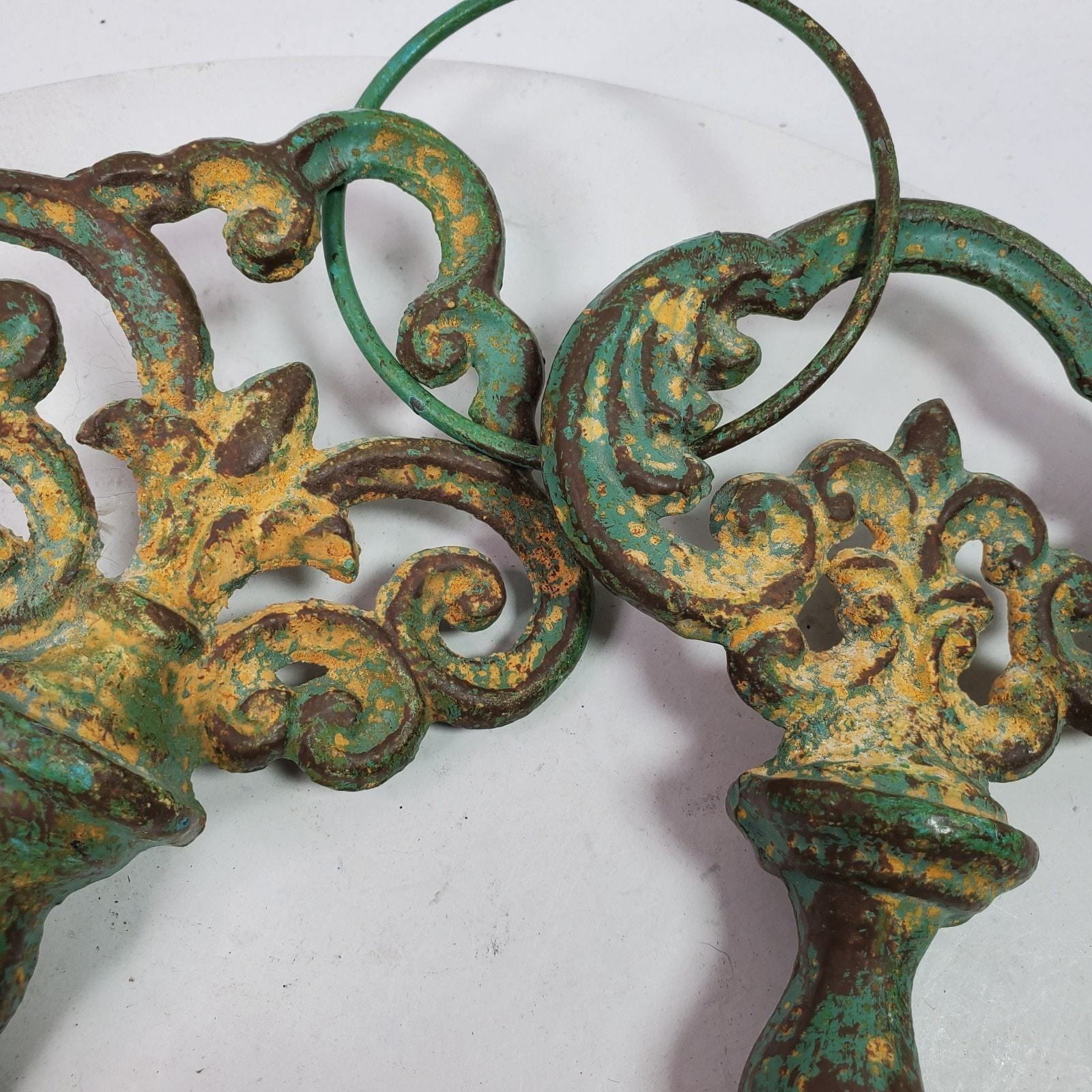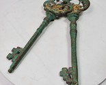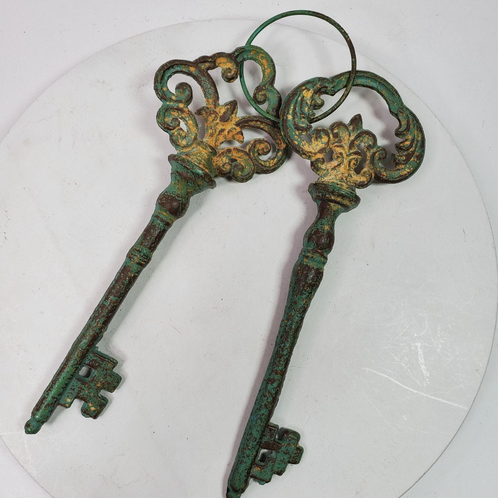- Vintage 2 Large Iron 12 Inch Skeleton Keys On Ring Rusty Distressed Patina
