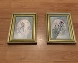 Vintage Pair Carmel Foret Framed Floral Print Picture Frame Art in good condition. There are scrapes/scratches and Peeling in areas. Carmel tells about her art on back of 1 of these art fames. The buys will receive 2 art picture frames.