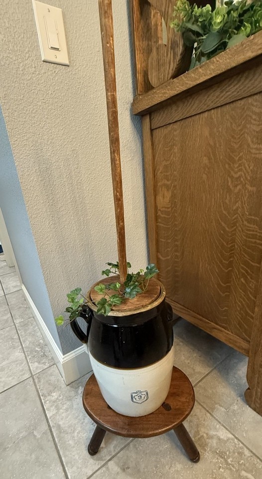 - Vintage 3 Gallon Stoneware Butter Churn Crock w/ Lid & Dasher