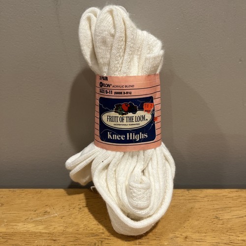 - Vintage 3 Pairs Fruit of the Loom Knee Highs New Old Stock Blue Size 9-11