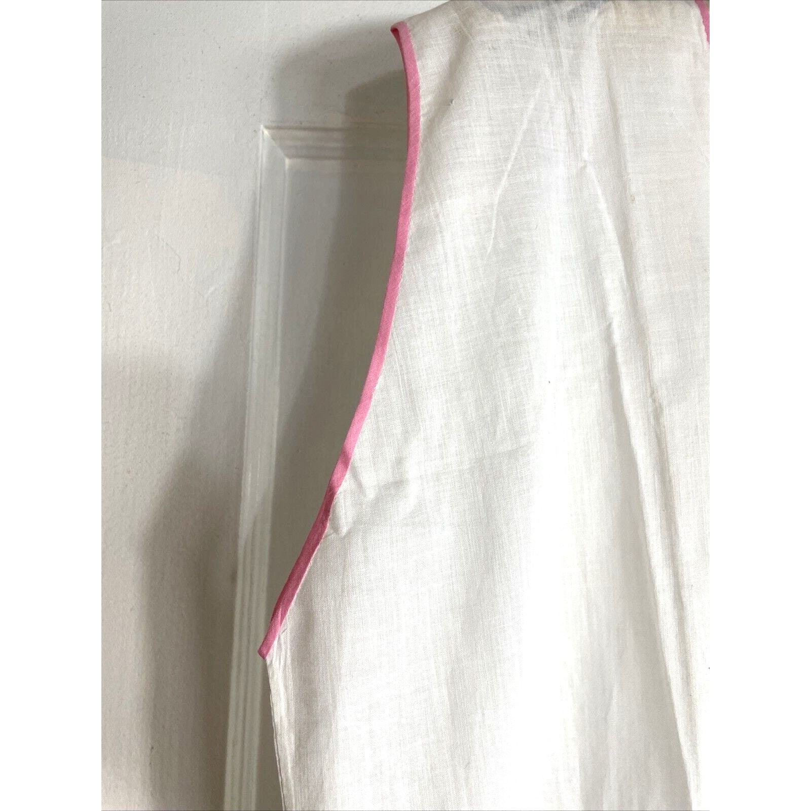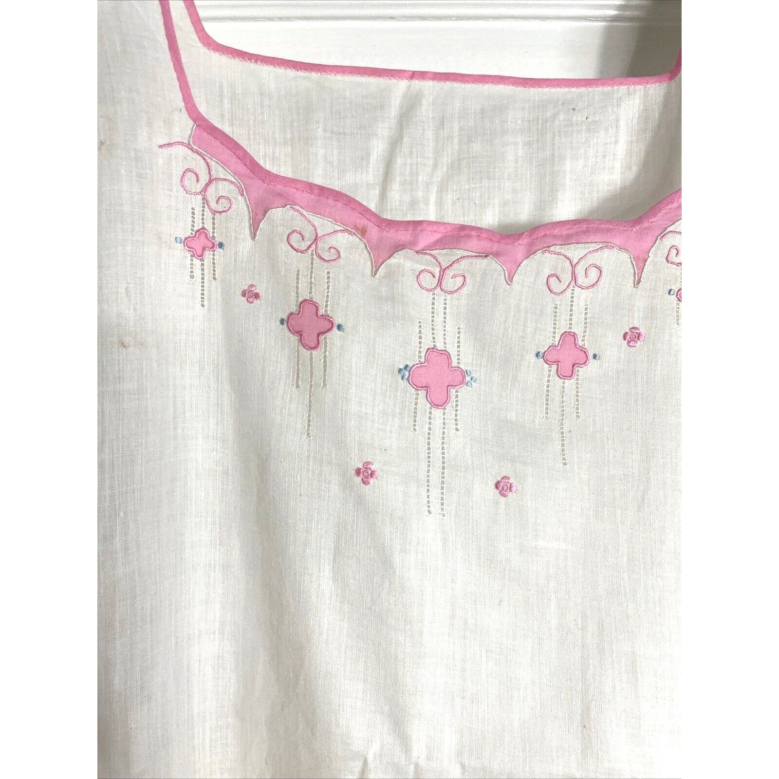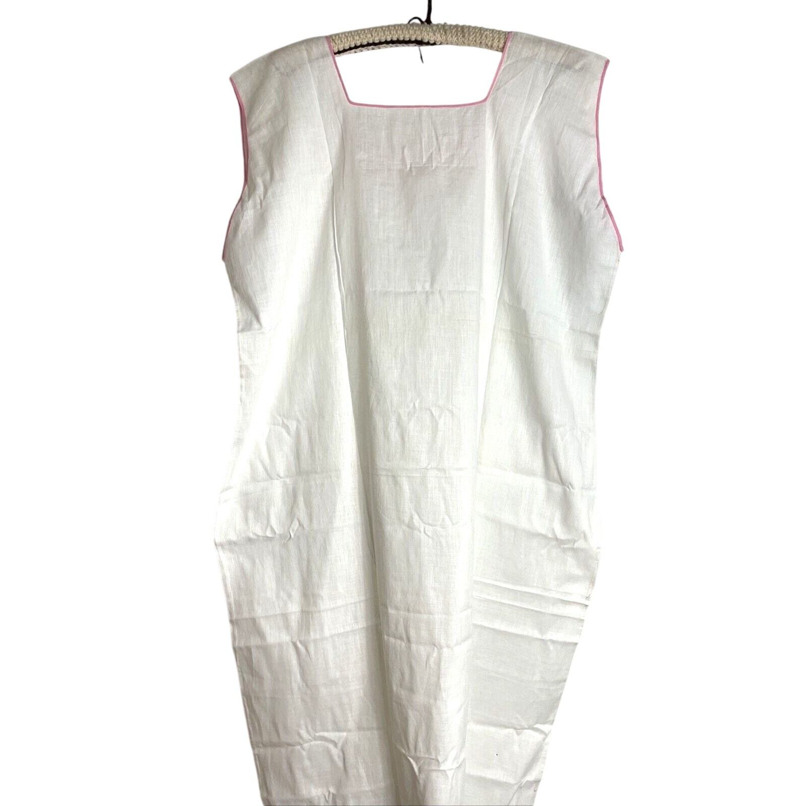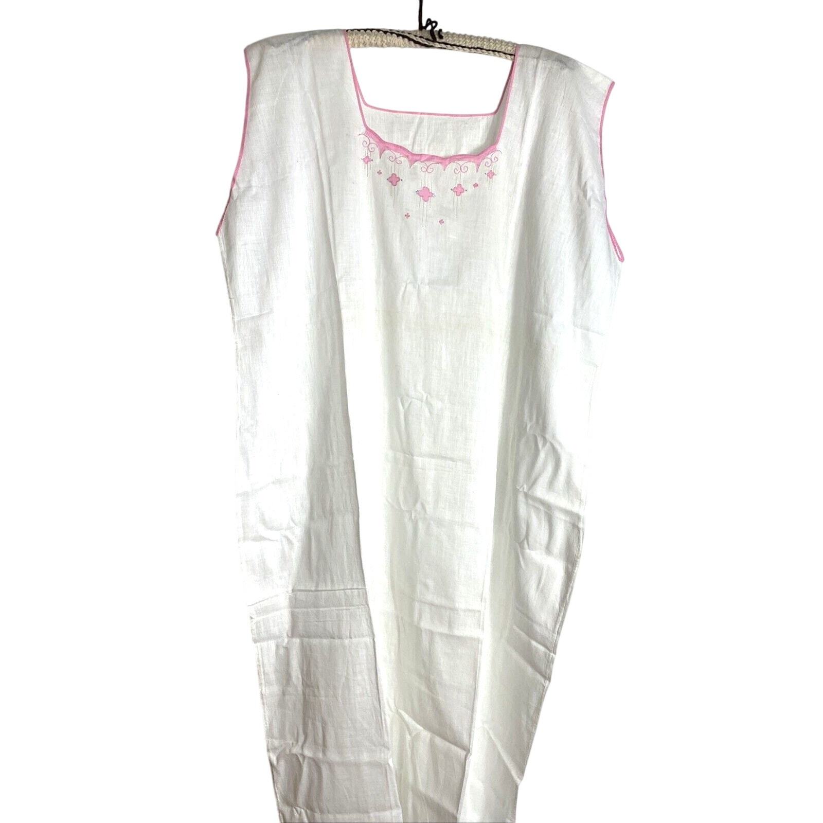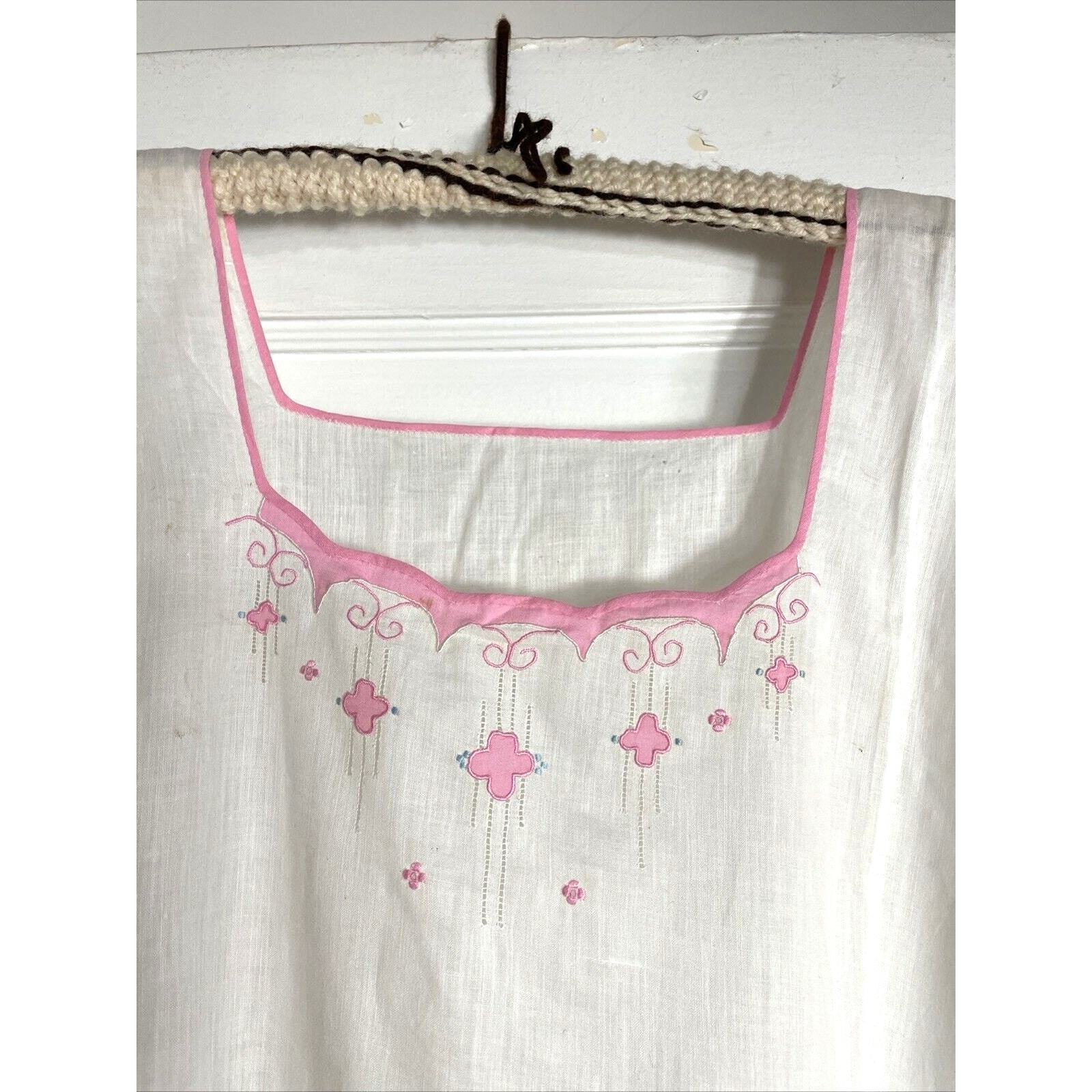 - Vintage 50s Sleep Dress Nightgown Cottagecore White Embroidered Pink Trim Large