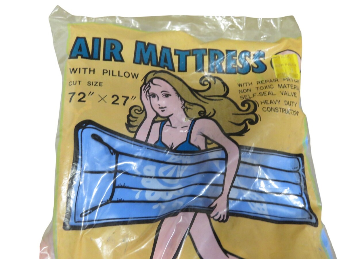 - Vintage 60’s / 70’s Blue Heavy Duty Vinyl Air Mattress with Pillow Pool Float