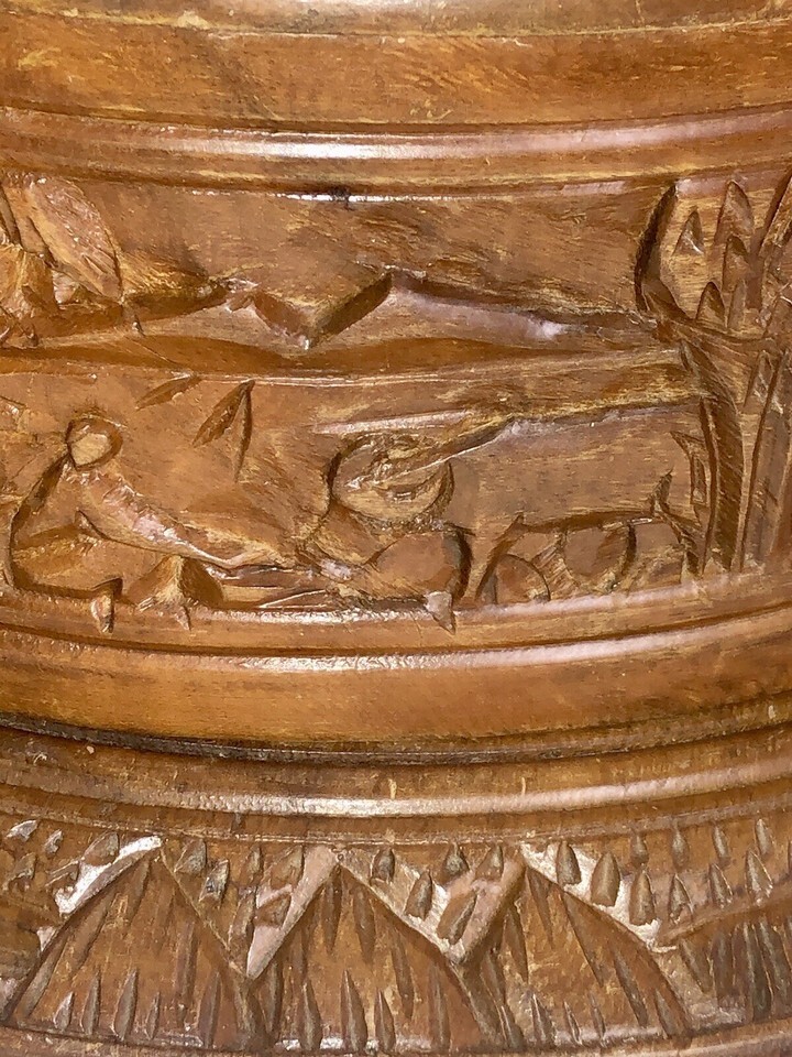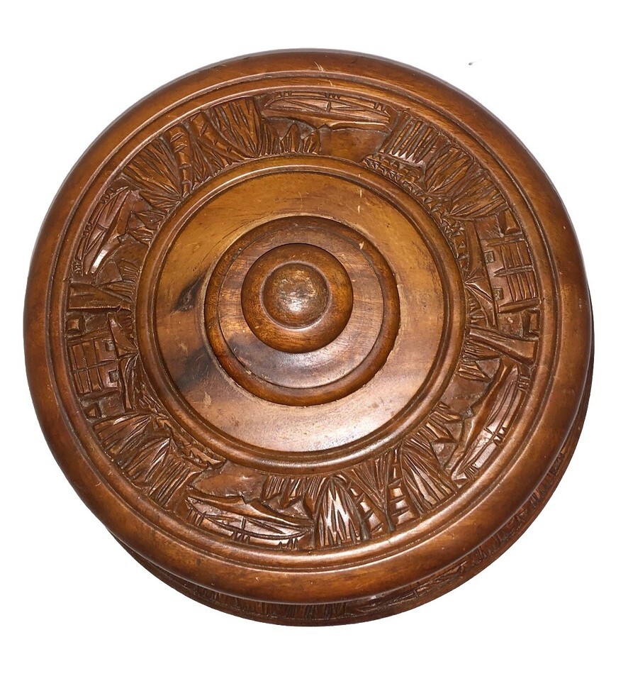 Vintage 60's/70's Hand Carved Wooden Covered Cake Stand Hawaiian Tiki Boho Dome