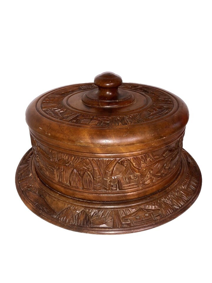 Primary image for Vintage 60's/70's Hand Carved Wooden Covered Cake Stand Hawaiian Tiki Boho Dome