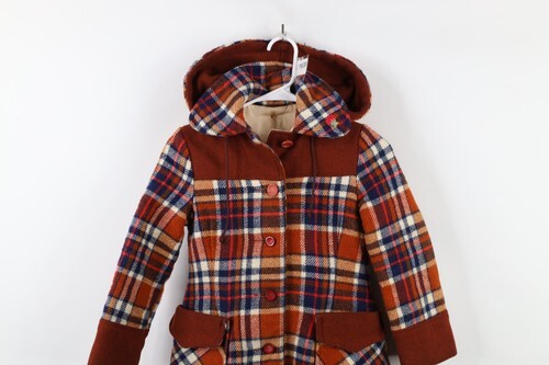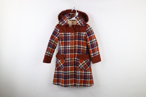- Vintage 60s 70s Girls Size 7 Distressed Wool Quilted Hooded Peacoat Jacket USA