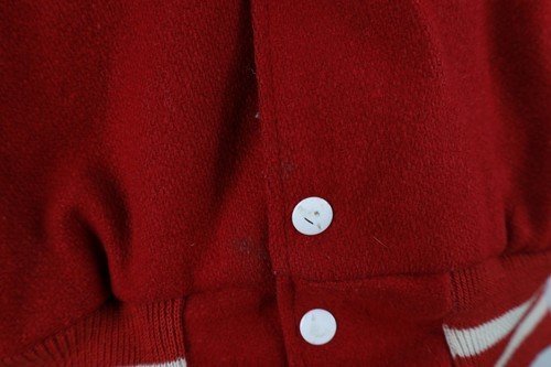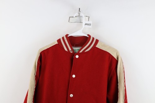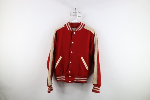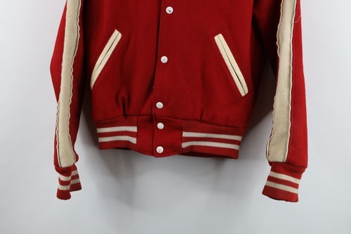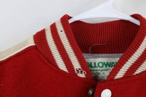 - Vintage 70s Streetwear Boys XL Distressed Wool Letterman Varsity Jacket Red USA