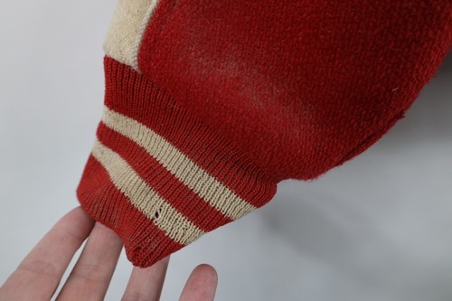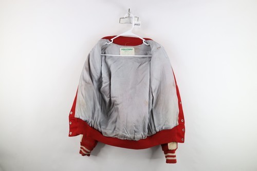 Vintage 70s Streetwear Boys XL Distressed Wool Letterman Varsity Jacket Red USA