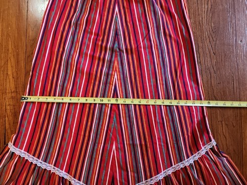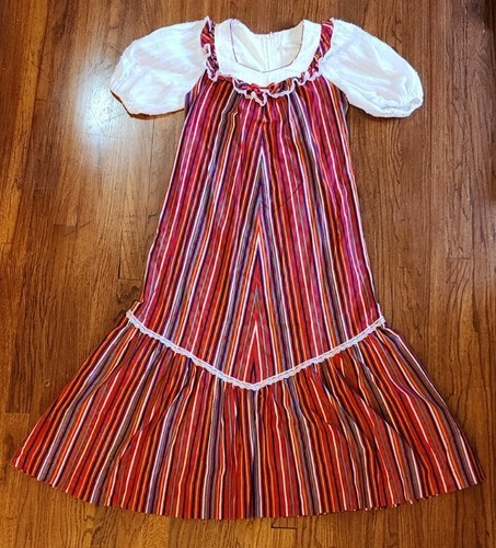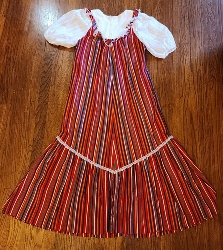 Vintage 70s Sun Babies Made in Hawaii Womens Maxi Dress Cotton Striped Lace Boho
