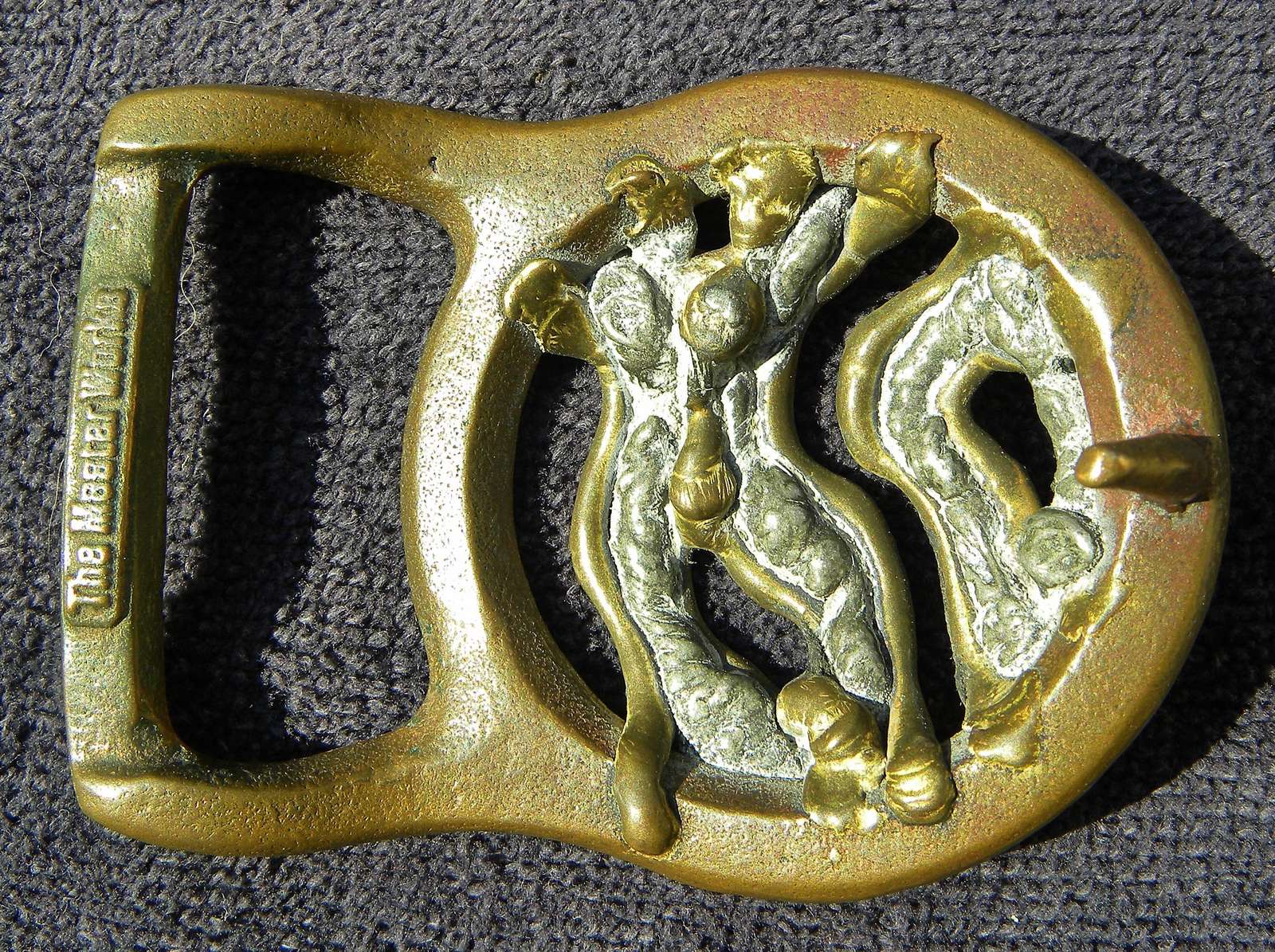 - Vintage 70s USA The Master Works Belt BUCKLE Solid brass Abstract OP Art - COOL!