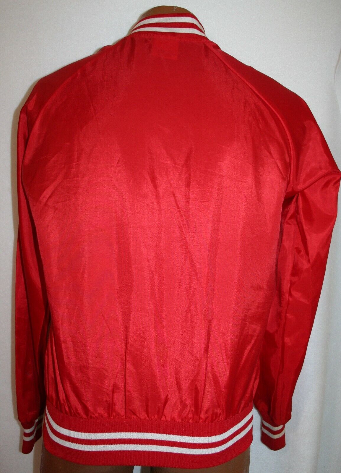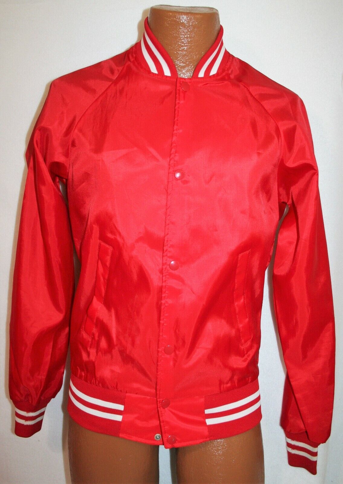 - Vintage 80s RUNYON Sportswear Red Polyester Satin Windbreaker Ringer JACKET S