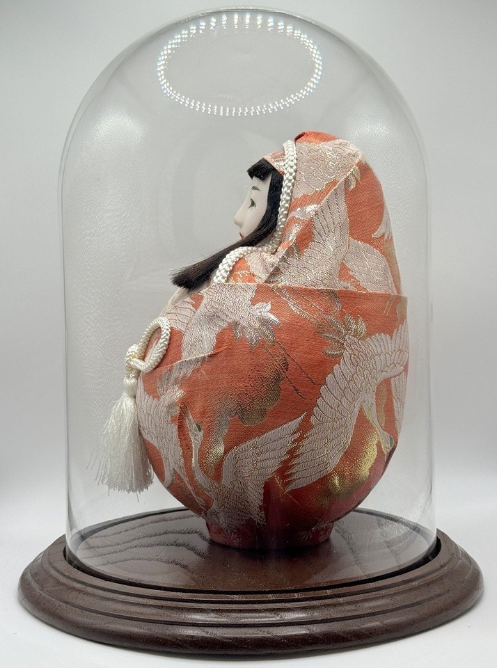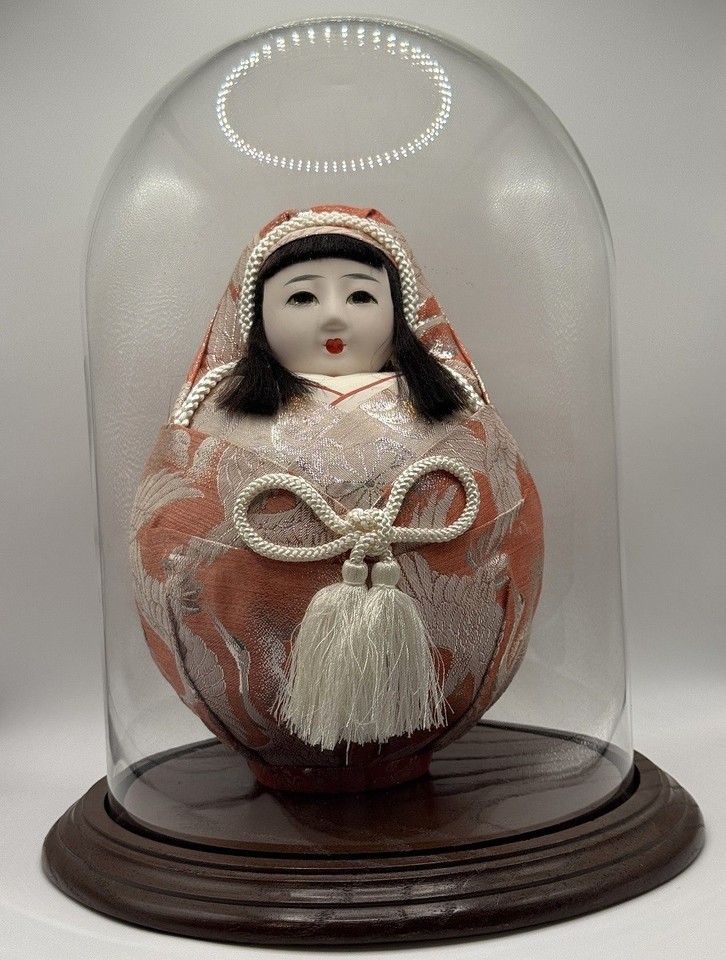 - Vintage 9″ Hime Daruma Roly‑Poly Wedding Doll - Princess Daruma in Glass Dome