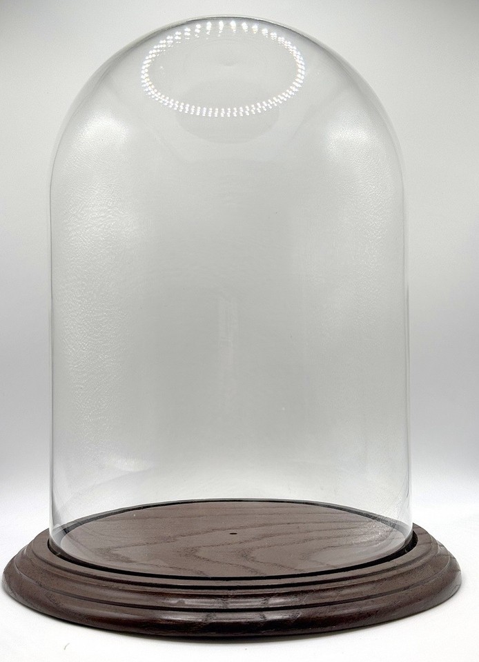 Make a unique cultural statement with this vintage Hime Daruma, a charming ?Princess Daruma? roly-poly doll standing approximately 9 inches tall, beautifully displayed in a fitted glass dome on a wooden base.