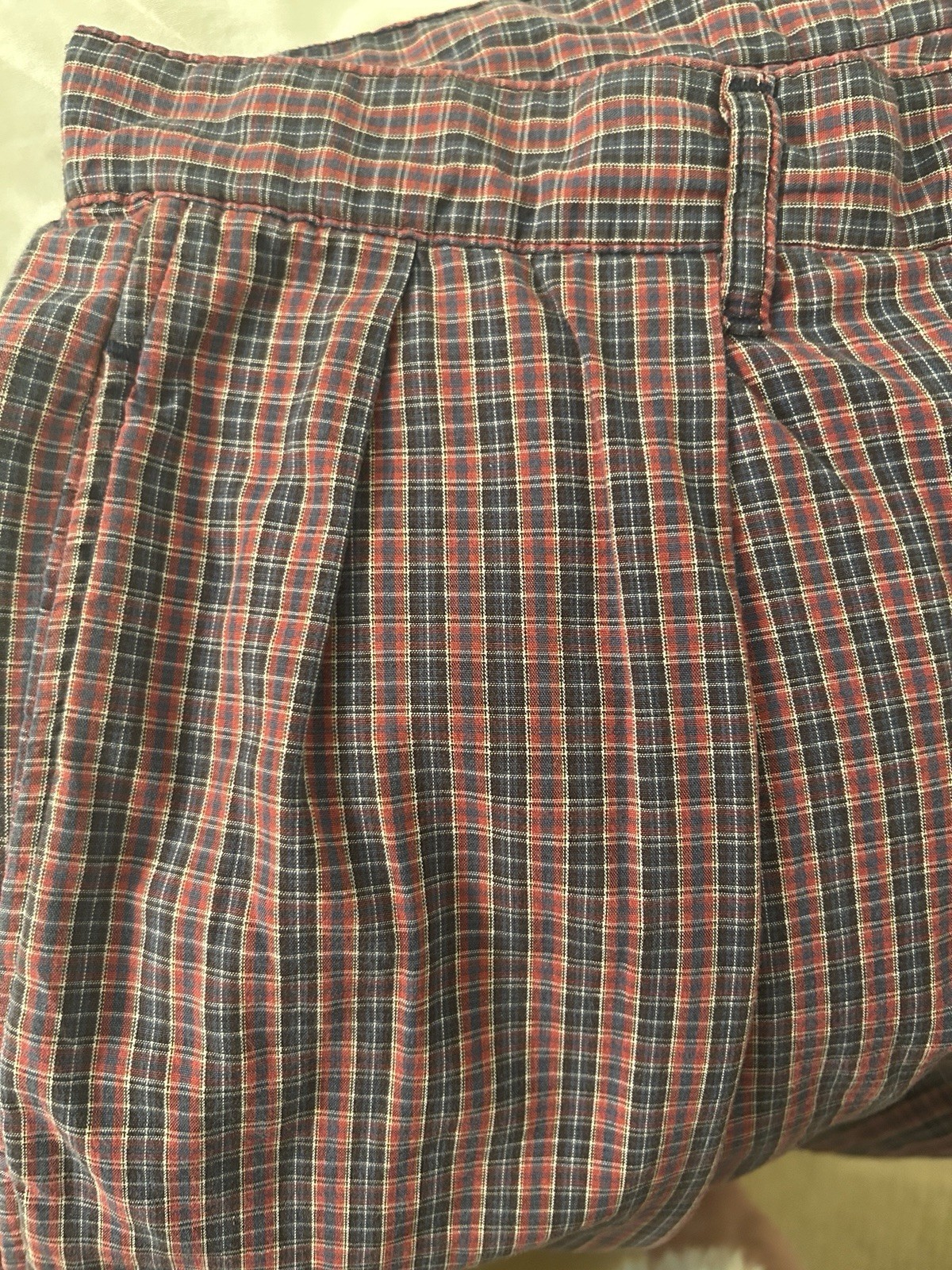 Pleated front,Two front pockets,Two back buttoned pockets |