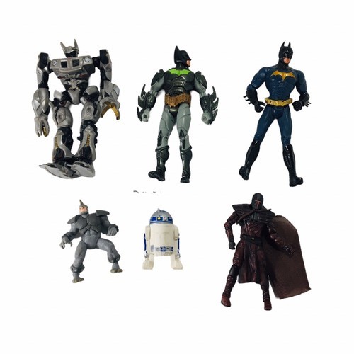 For sale is a lot of vintage 90s action figures including characters from popular franchises such as Star Wars, Batman, and Transformers. This lot also includes a rare Mandalorian figure. All figures are made of durable plastic. This small lot is perfect for fans and collectors of vintage action figures. Don't miss out on the opportunity to own these iconic characters from the 90s and maybe early 2000's.