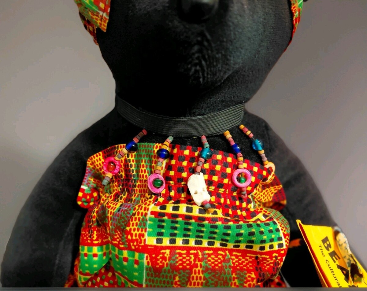 This culturally aware bear features a traditional African outfit, making it not only a cute stuffed animal but also a representation of cultural diversity.