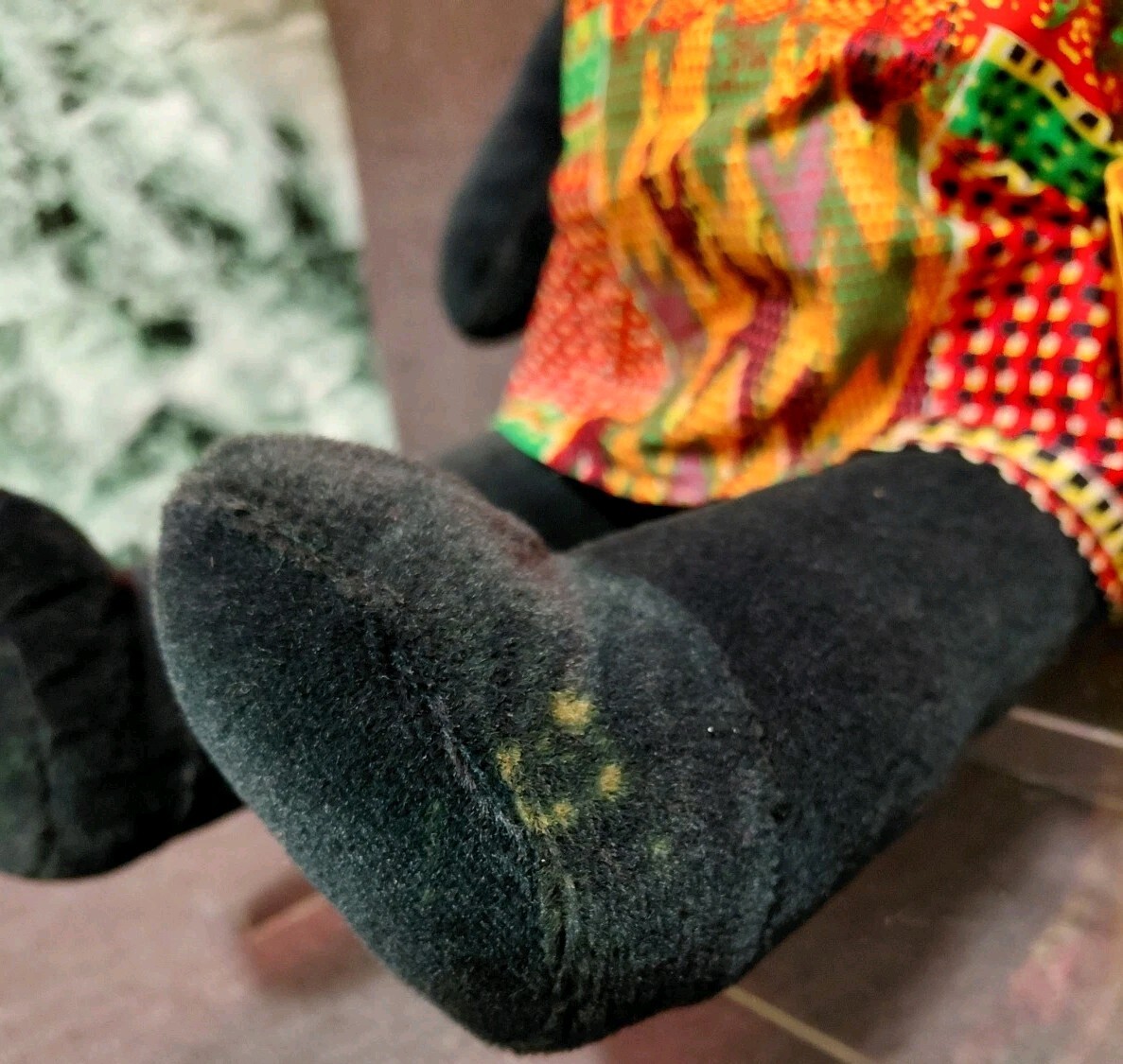 - on the bear's left ankle/foot are are 3 yellow dots...not sure what made them...bear was purchased that way