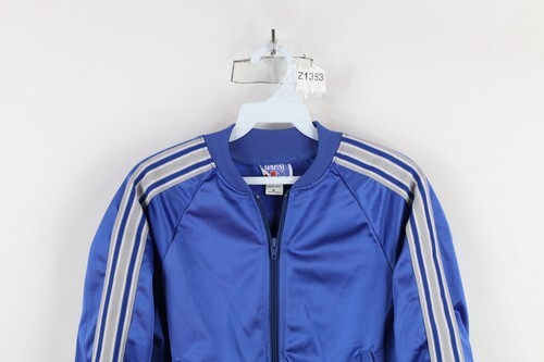 - Vintage 90s Boys Medium Striped Full Zip Soccer Warm Up Track Jacket Blue USA