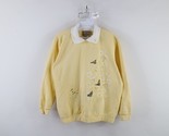 Vintage 90s Country Primitive Womens Medium Butterfly Flower Collared Sweatshirt