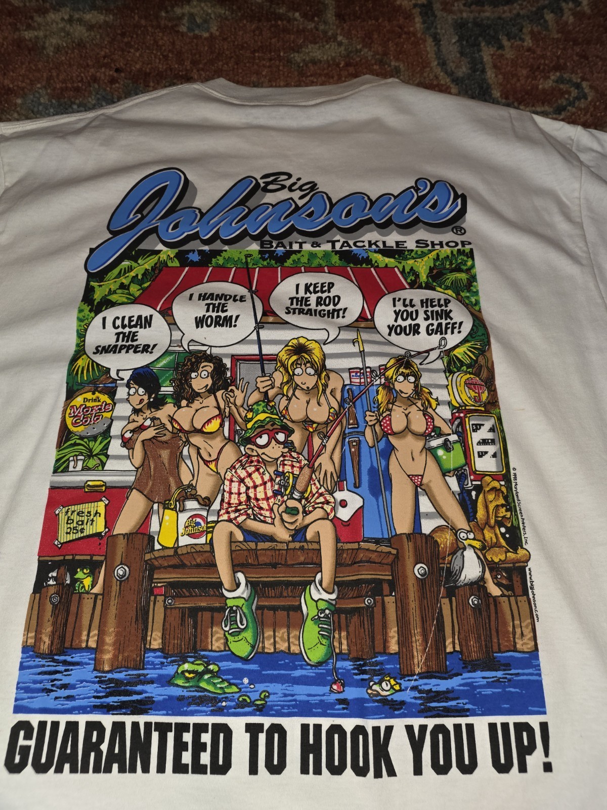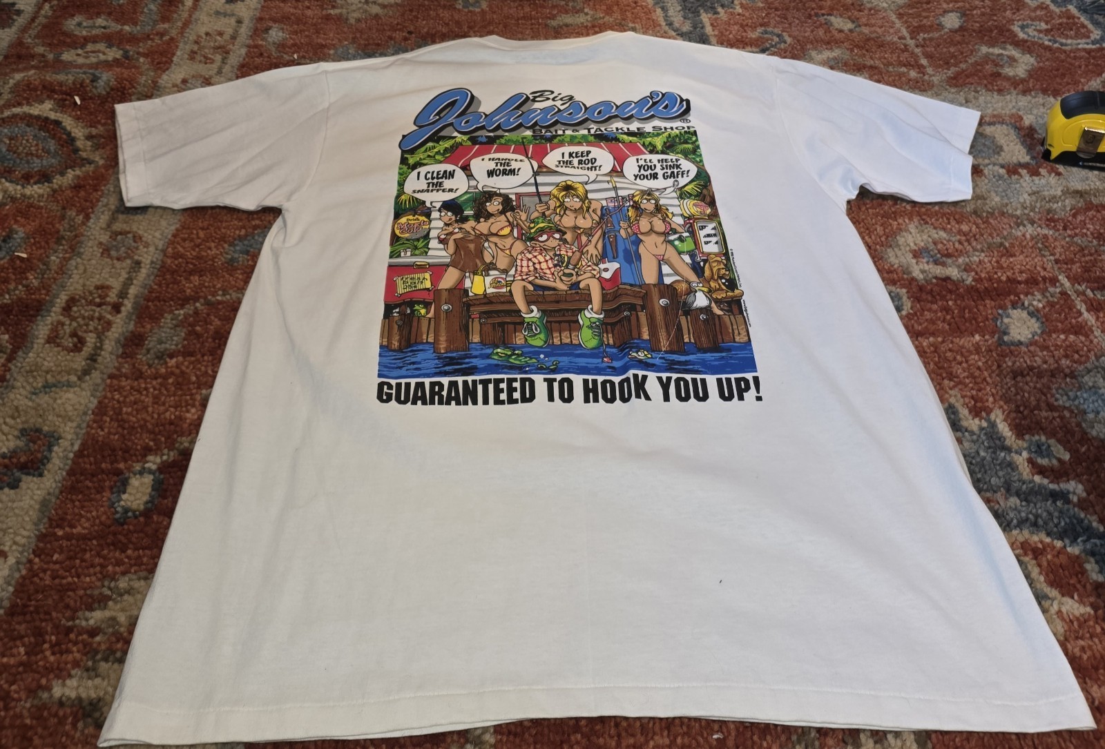 - Vintage 90s Funny Dirty Joke Fishing Shirt Big Johnson Clean Snapper USA Made XL