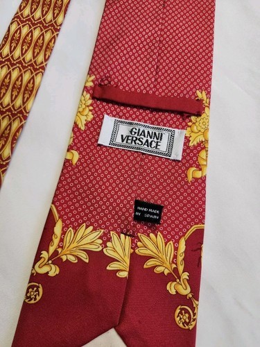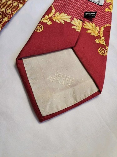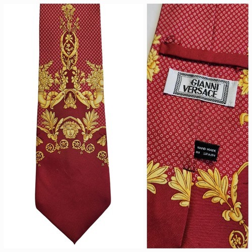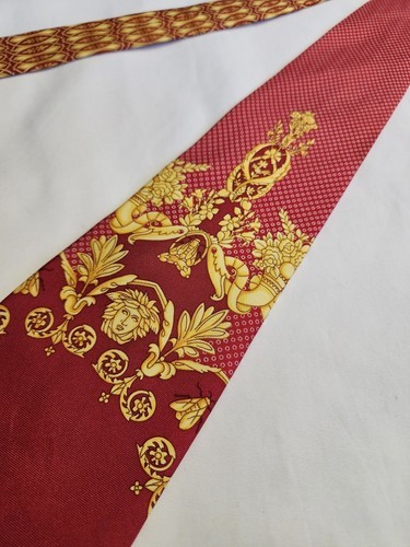 - Vintage 90s Gianni Versace Italy Medusa Motif Red & Yellow Silk Tie
