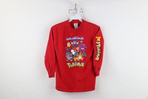 - Vintage 90s Pokemon Boys Large Faded Spell Out Long Sleeve T-Shirt Red Cotton