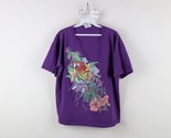 Vintage 90s Streetwear Womens Large Faded Parrot Bird Flower T-Shirt Purple USA