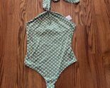 - Vintage 90s Y2K Green Orange Geometric Halter Top Tie Back Body Suit NWT