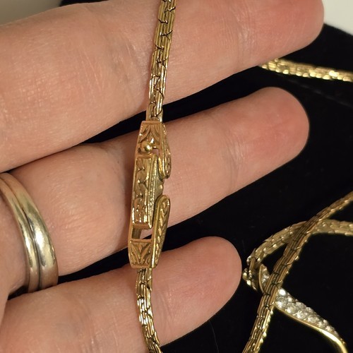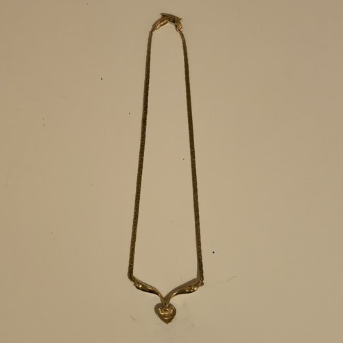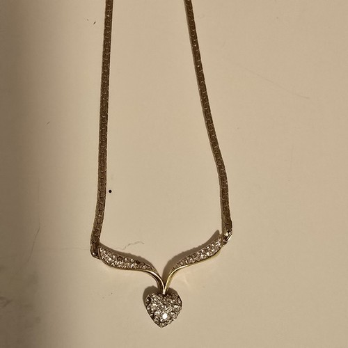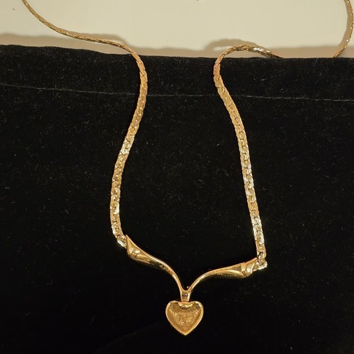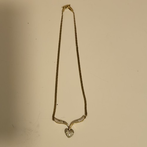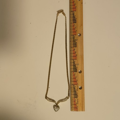 Vintage A&S Attwood & Sawyer Rhinestone Crystal Heart Gold Tone V Necklace 16.5"