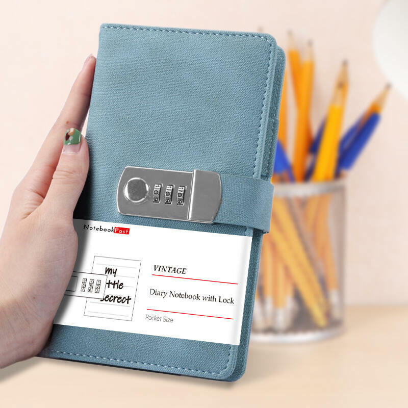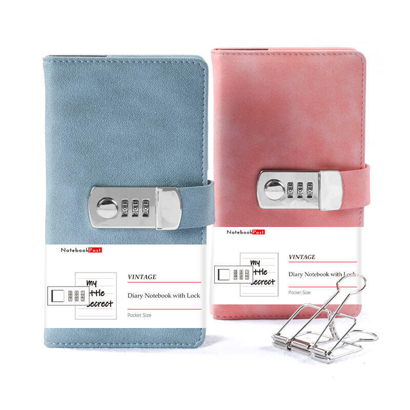 Vintage A6 notebook with a metal password lock, you can write down all your private issues on it.