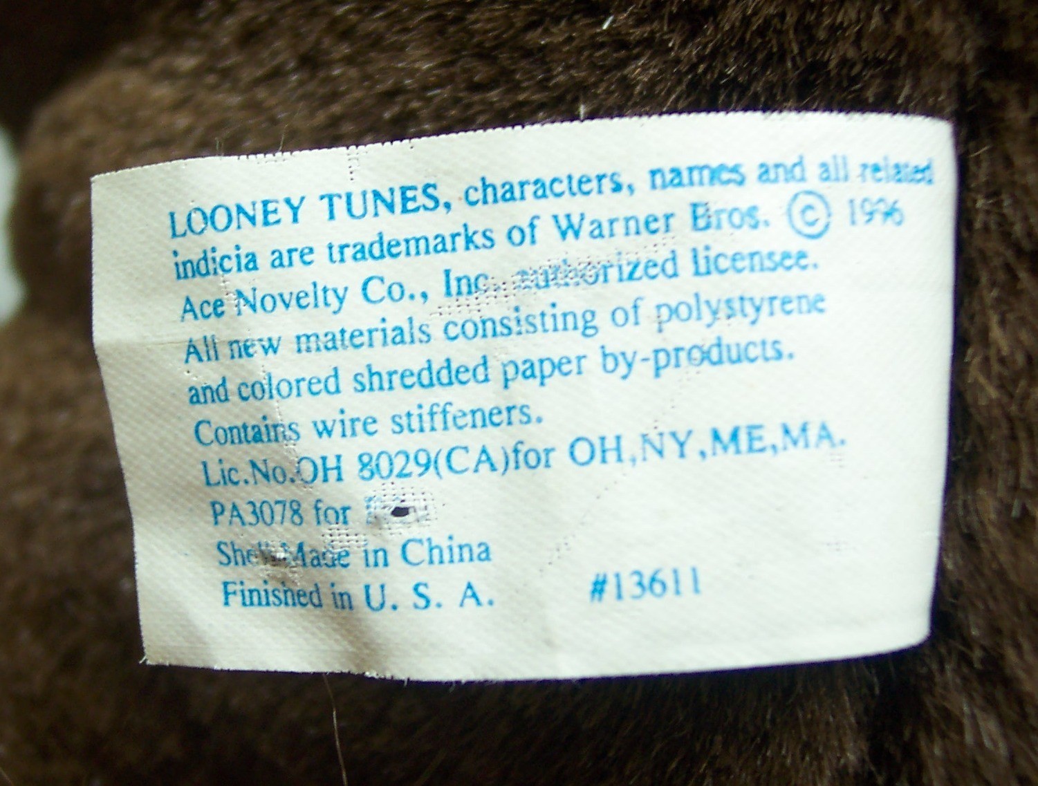 - VINTAGE ACE WB Looney Tunes TAZ TASMANIAN DEVIL 14" Plush Stuffed Animal W/ TAG
