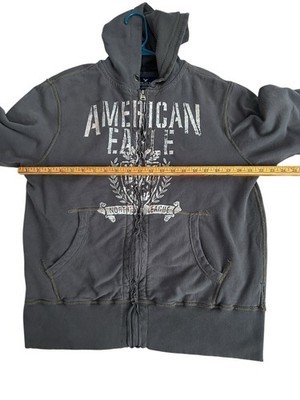 - Vintage American Eagle Hoodie Mens Large Full Zip Up 1977 Eagle Y2K Blueish Gray