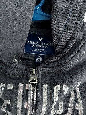 Vintage American Eagle Hoodie Men's Large Full Zip Up 1977 Eagle Y2K Blueish Gray. Missing drawstring, This is very heavy, much heavier than a normal hoodie!