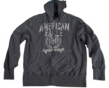Vintage American Eagle Hoodie Mens Large Full Zip Up 1977 Eagle Y2K Blueish Gray
