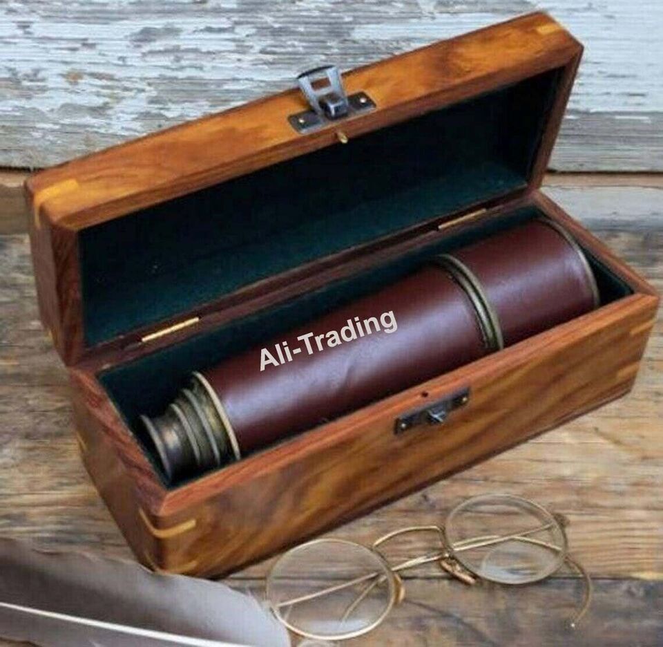 - Vintage Antique Marine Brass Spyglass Nautical Telescope Whit Wooden Box