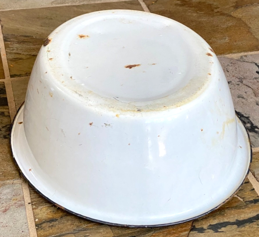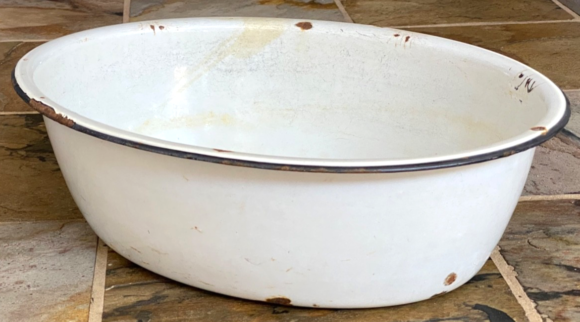 Vintage Antique Porcelain Baby Bath Tub Wash Basin White Metal - 18 x 14"