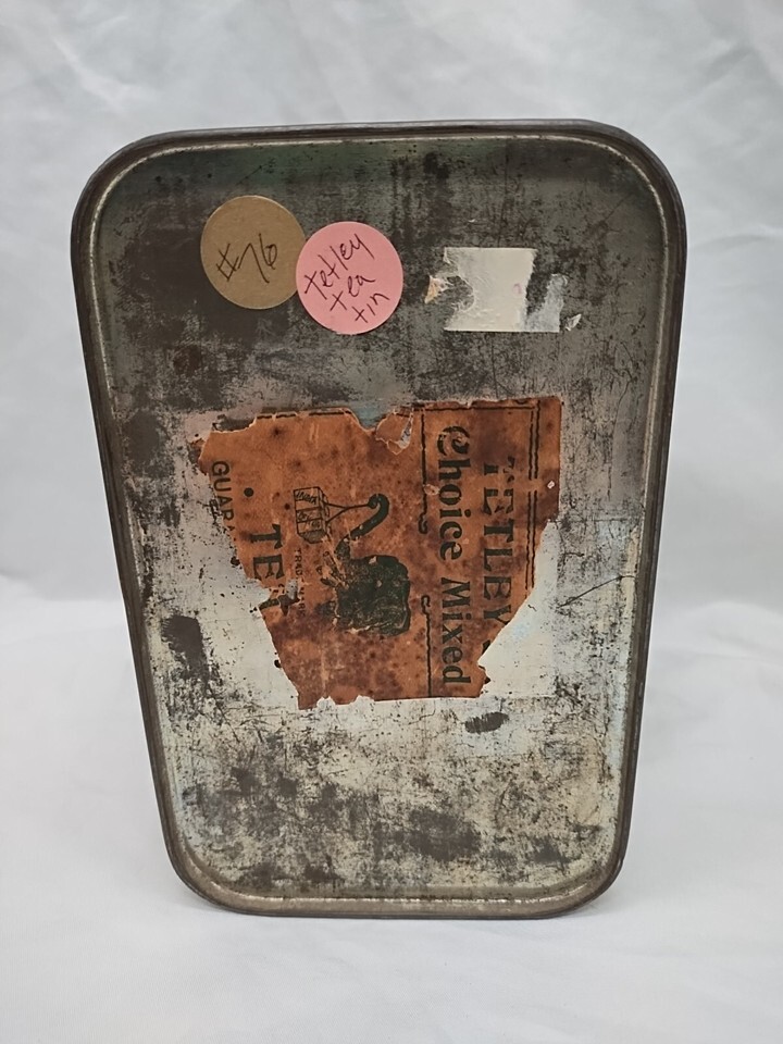 Vintage Antique Tetley Tea Tin 6.5" X 4" X 4"