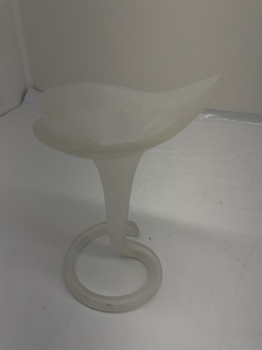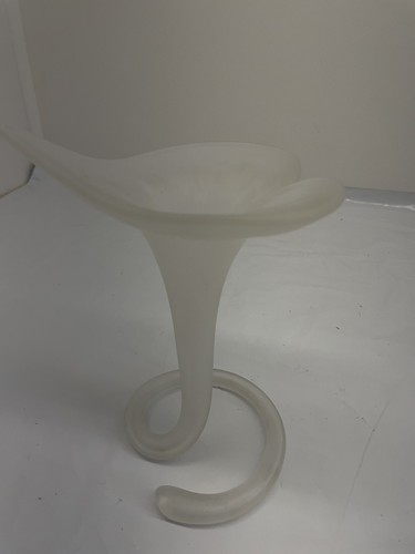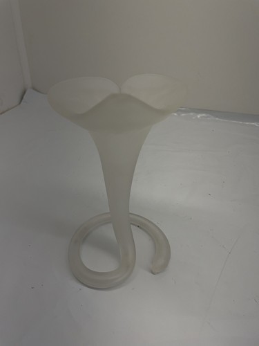- Vintage Art Nouveau Style White Frosted Glass Flower Leaf Vase