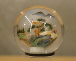 Vintage Asian Art Round Dome Glass Paperweight Japan Reverse Painted Mountains